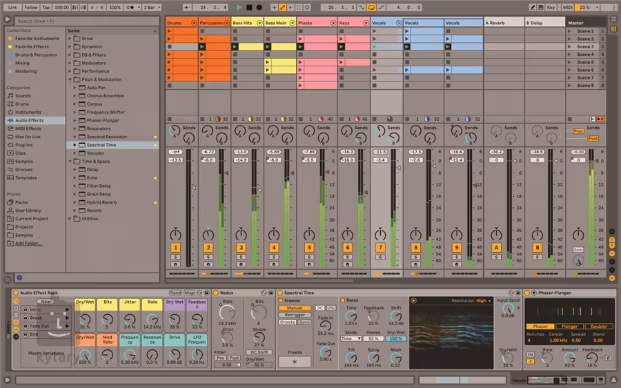 Co se týče nástrojů, verze Live 11 byla doplněna o zbrusu nový Hybrid Reverb, který vám nabídne jak konvoluční, tak algoritmické možnosti, nebo například nový typ Delaye – Spectral Resonator, který pracuje tak, že rozdělí zvuk na jednotlivé části a poté výsledek roztáhne, posune a rozostří o frekvenci nebo notu. Nástroj Spectral Time pak umožní vzít jednotlivé části stopy a vytvořit frekvenční zpoždění, díky čemuž získáte velice zajímavou paletu reverbů a delayů, které se dají přetvořit v extrémní efekty.