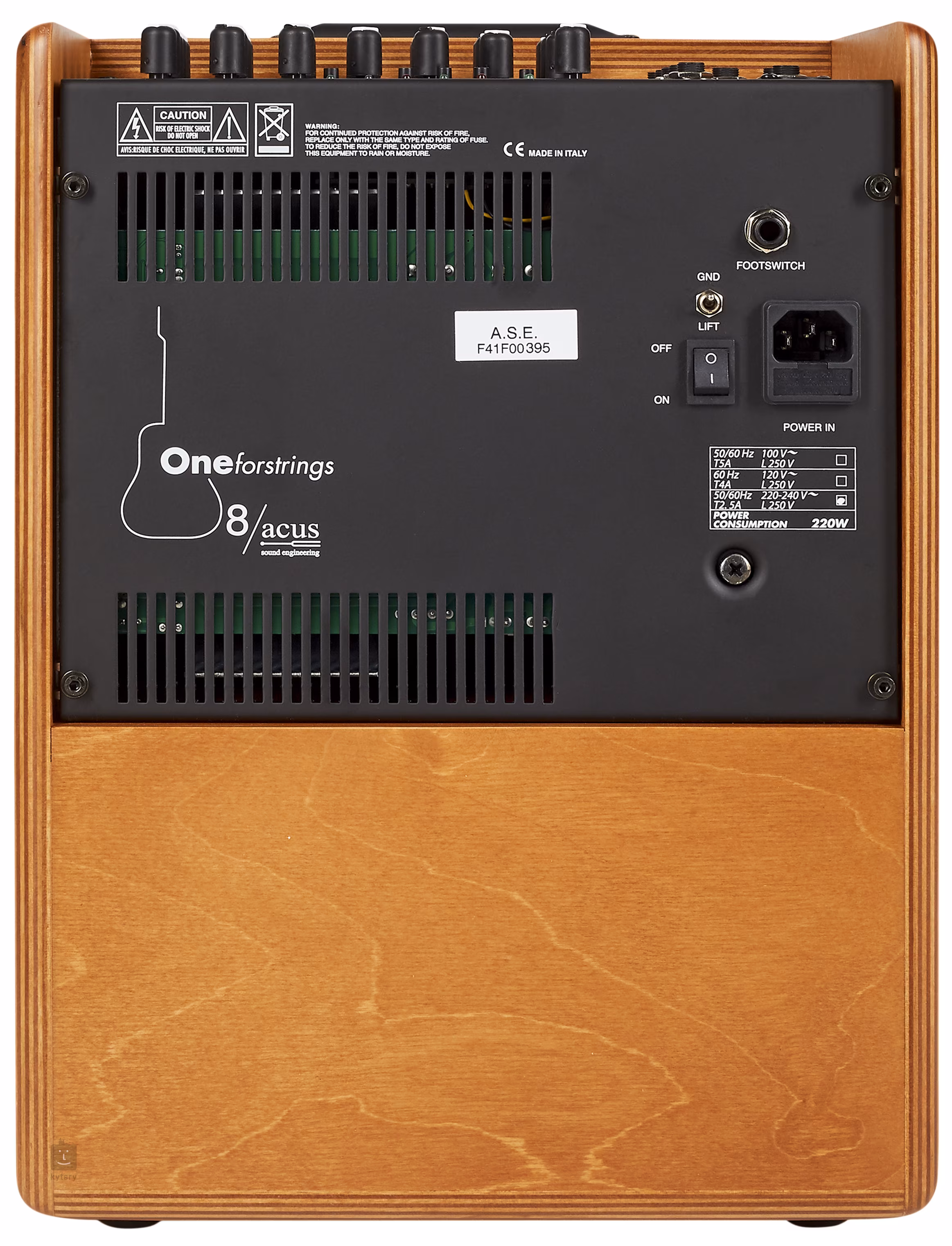 Akustické kombo One-Forstrings 8T italské značky Acus s výkonem 200 W je určeno především malým akustickým či folkovým uskupením a písničkářům. Nabízí možnost připojit souběžně až tři kytary a dva mikrofony a poskytnout tak nástrojům či zpěvu dostatečný prostor při maximálním zachování věrného přenosu akustického zvuku. V případě, že by výkon nestačil, lze vyvést signál symetrickým XLR či nesymetrickým linkovým výstupem do externích ozvučovacích zařízení.