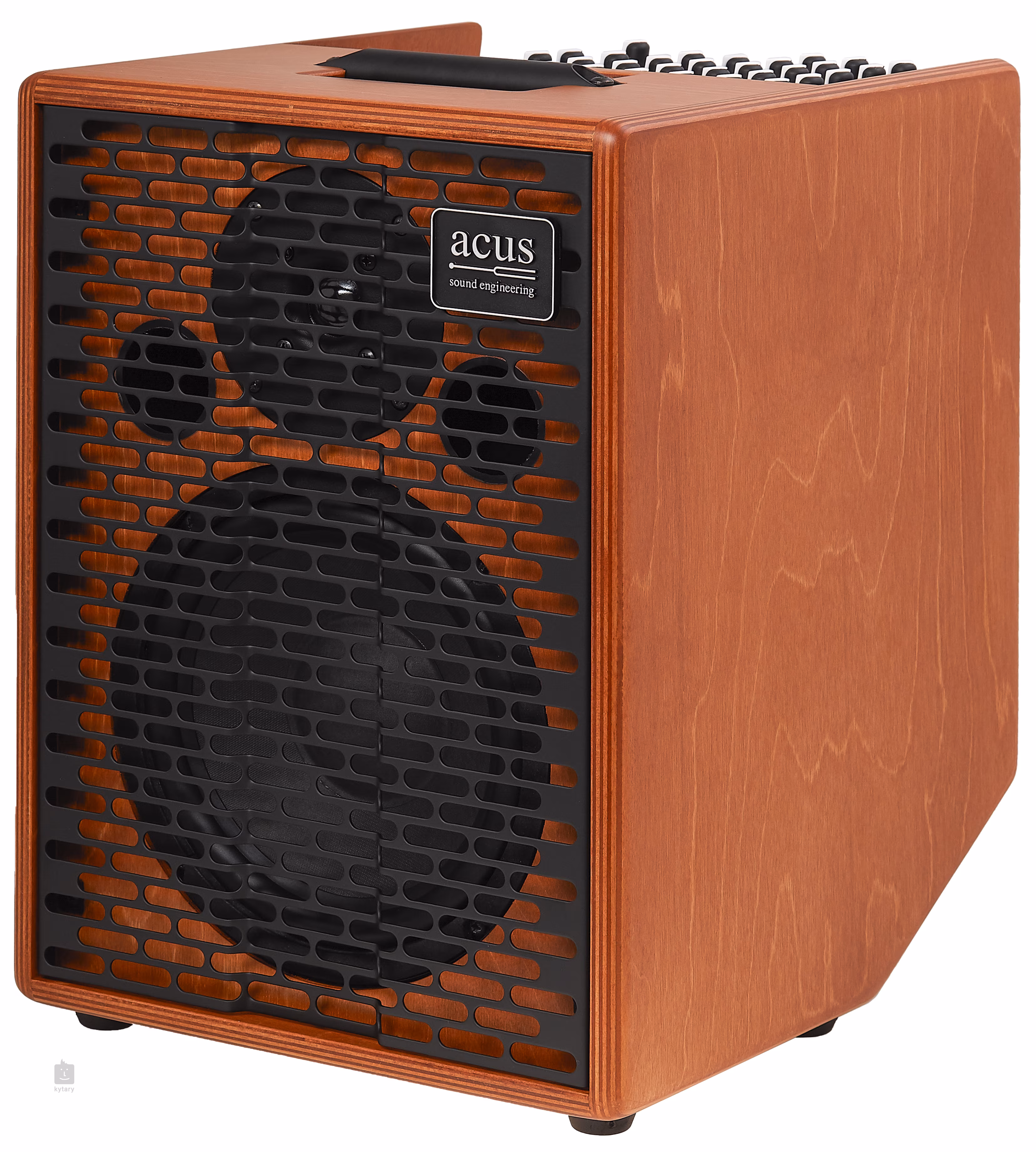 Akustické kombo Oneforstrings 8 Wood Cut 2.0 italské značky Acus s výkonem 200 W (50 W tweeter + 150 W woofer) je určeno především malým akustickým či folkovým uskupením a písničkářům. Nabízí možnost připojit souběžně až tři kytary, dva mikrofony a kytaru či dvě kytary a jeden mikrofon, a poskytnout tak nástrojům či zpěvu dostatečný prostor při maximálním zachování věrného přenosu akustického zvuku. V případě, že by výkon nestačil, lze vyvést signál symetrickým XLR či nesymetrickým linkovým výstupem do externích ozvučovacích zařízení.
