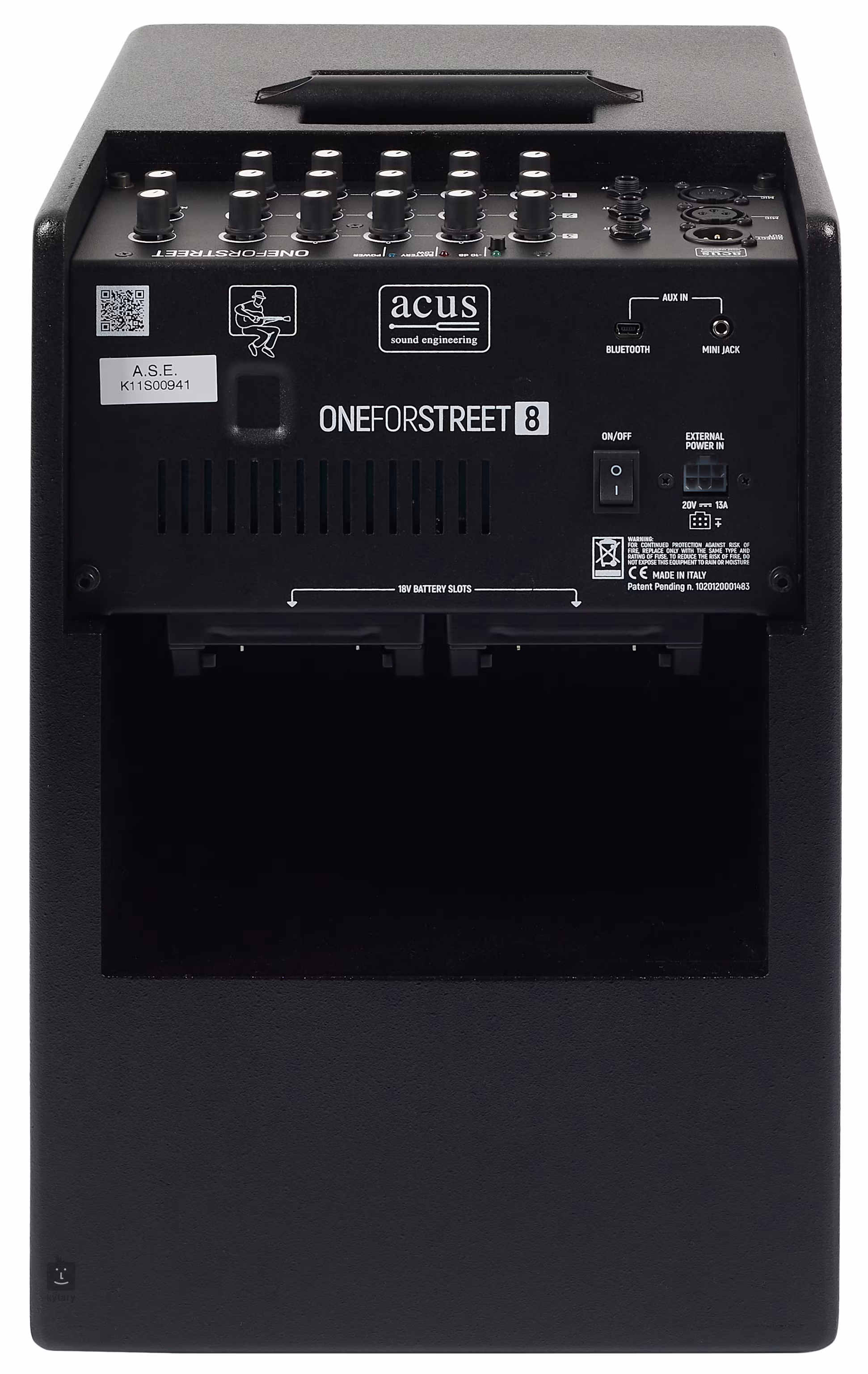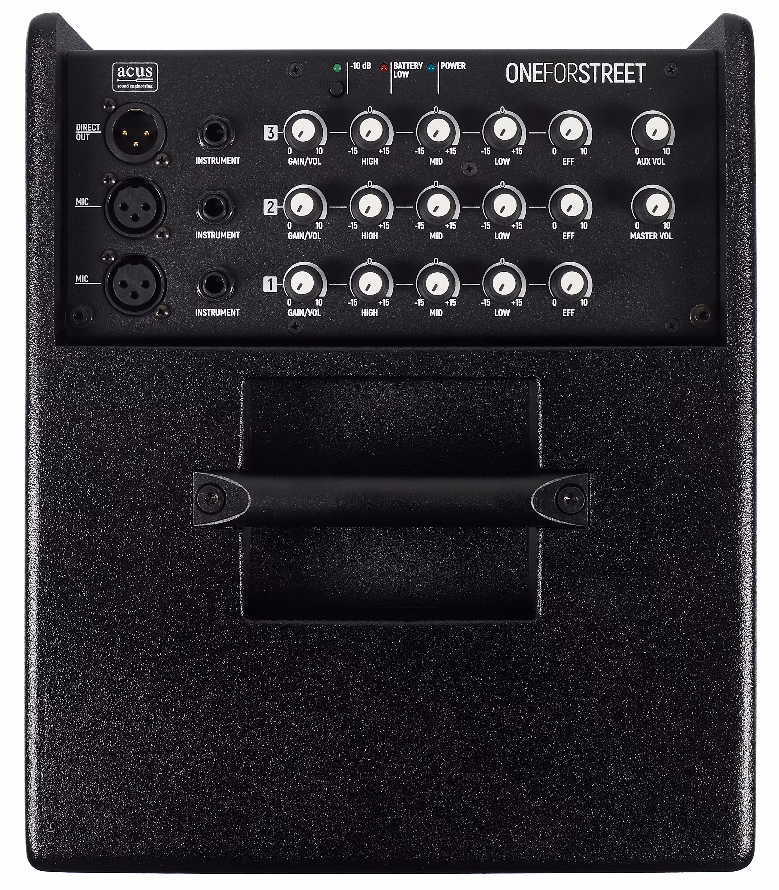 OneForStreet 8 Black je kombo pro akustické nástroje vhodné pro pouliční muzikanty/buskery a menší hudební uskupení. Nabízí dotažený design aparátů Acus, tři kanály se třemi nástrojovými vstupy a dvěma mikrofonními, moderní funkce (kompatibilita s Bluetooth přes přibalený přijímač Artesia BT-1, streamování propojením XLR Direct Out výstupu a Aux In konektoru) a možnost napájení bateriemi s výkonem až sedm hodin na jedno dobití.