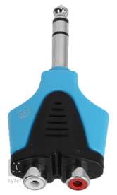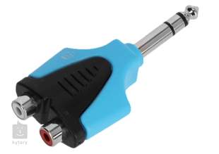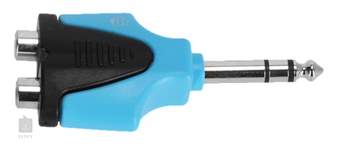 Redukce typu Y, která umožňuje připojení stereo zdroje pomocí dvou konektorů RCA cinch a převedení signálu na stereo konektor Jack 6,3 mm TRS. Plastové tělo v modro-černém provedení.