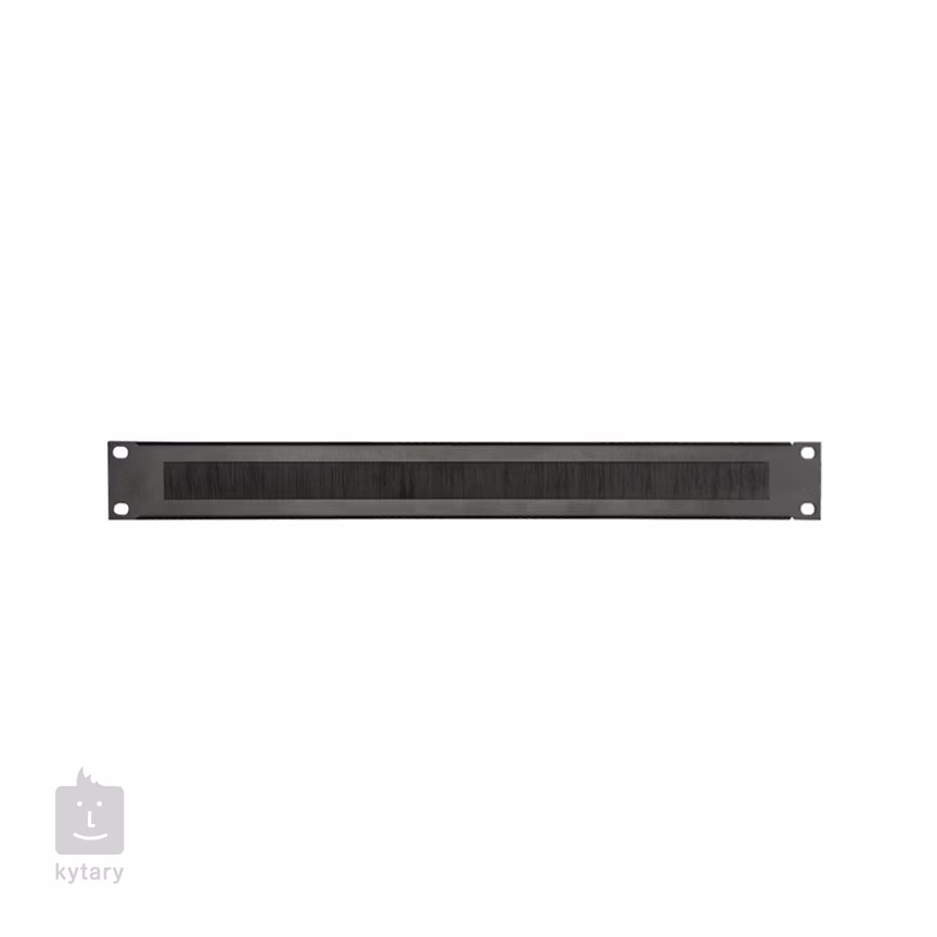 Ocelový 1U panel do 19" rack casu s otvorem pro průchod konektorů a kabelů. Otvor je vyplněn drobnými štětinami proti zanesení prachem.