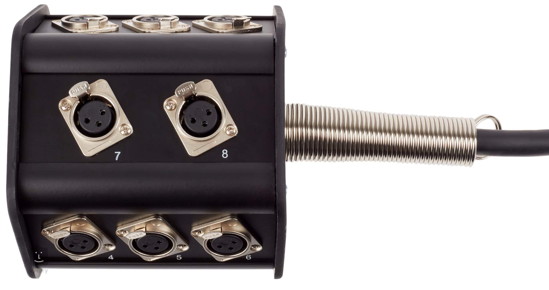 Stagebox je nepostradatelným vybavením pro ozvučení jakékoli akce. Tento je super volbou například pro ozvučení bicí soupravy.Pyramidový panel stageboxu obsahuje zásuvkový terminál s 8 vstupními kanály (XLR F). Jednotlivé konektory (XLR M) kabelového vějíře pak slouží pro připojení k mixážním konzolím, multikanálovým převodníkům či audio rozhraním, disponují vlastními 60 cm dlouhými vodiči, což poskytuje dostatek prostoru pro jejich flexibilní připojení.