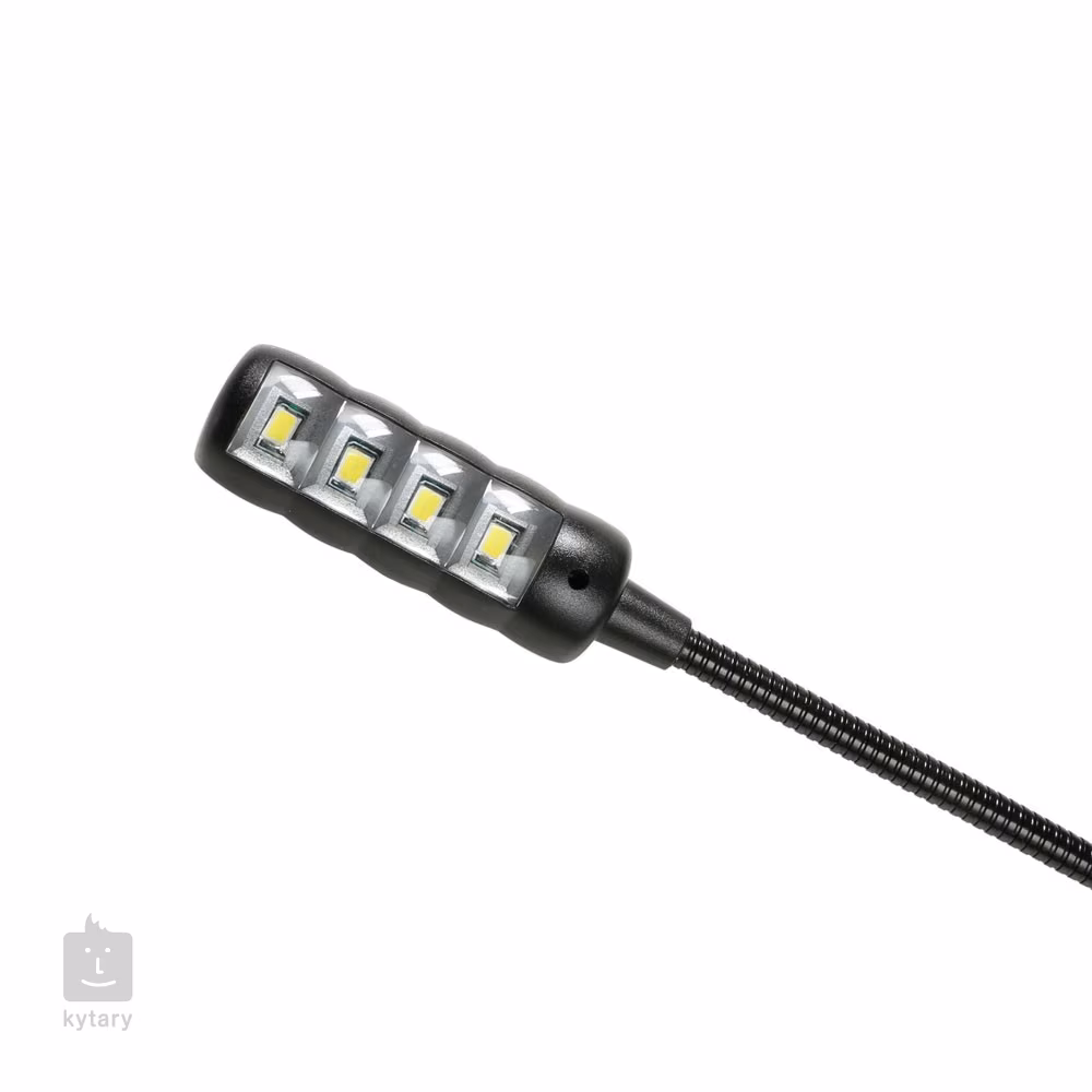 Univerzální lampička se čtyřmi LED světly s dlouhou životností vám umožní maximální kontrolu nad mixážním pultem i v těch nejtemnější prostorech. Lampička svítí ve třech režimech (studená bílá) s maximálním výkonem 12V, napájení je možné pomocí fantomového napájení. Husí krk o délce 400 mm potom zaručí skvělé osvícení kterékoli části vašeho mixu.
