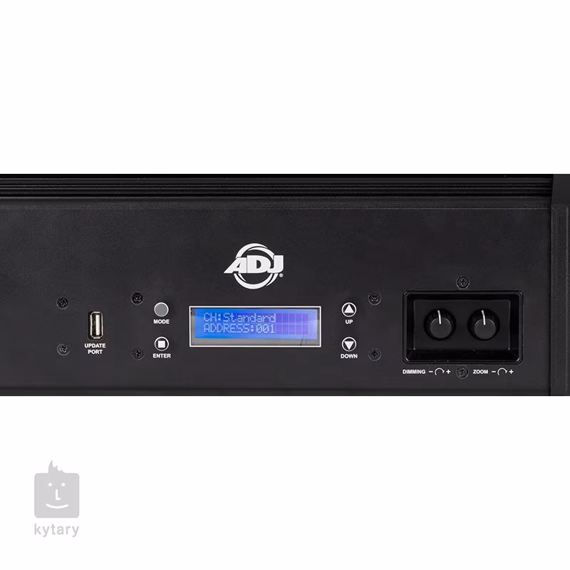 K ovládání zařízení můžete využít standardní protokol DMX512 s pěti kanálovými režimy (14, 17, 19, 13 CMY, 19 CMY) nebo protokol RDM. K dispozici je také rozsáhlá knihovna barevných presetů, v níž najdete 62 presetů pro bílé světlo, 64 barevných maker pro paletu RGBA a řadu dalších možností. V případě potřeby manuálního nastavení můžete využít přehledný ovládací panel s displejem a tlačítky. Přístroj je osazen třípinovými a pětipinovými DMX konektory, napájecími konektory PowerCON a USB portem.