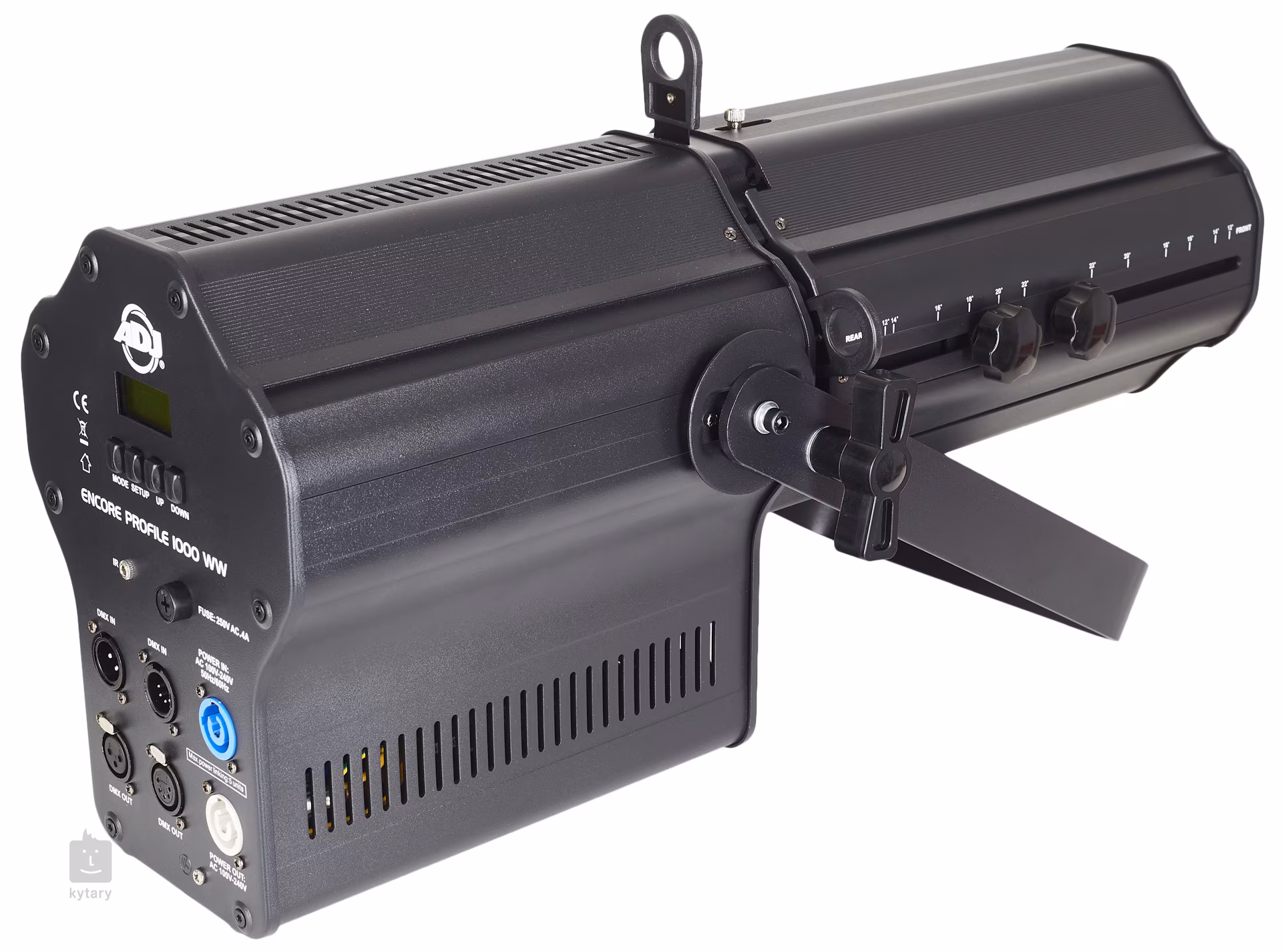 Encore Profile 1000 WW od společnosti ADJ je profilovací spotlight reflektor osazený jedinou 120W COB LED diodou, která produkuje teplé bílé světlo o barevné teplotě 3200 K. Kromě obvyklých výhod LED diod, jako jsou energetická úspora, nízká produkce tepla a dlouhá životnost, využívá také technologii COB (Chip On Board). Ta spojuje velké množství LED čipů na malé ploše a vytváří tak integrované LED pole, které reflektoru dodává vyšší světelnou intenzitu a zajišťuje rovnoměrnou emisi světla. Výhodou svítidla je rovněž vysoký index CRI (98), který zajišťuje naprosto věrnou reprodukci barev všech osvětlených objektů.