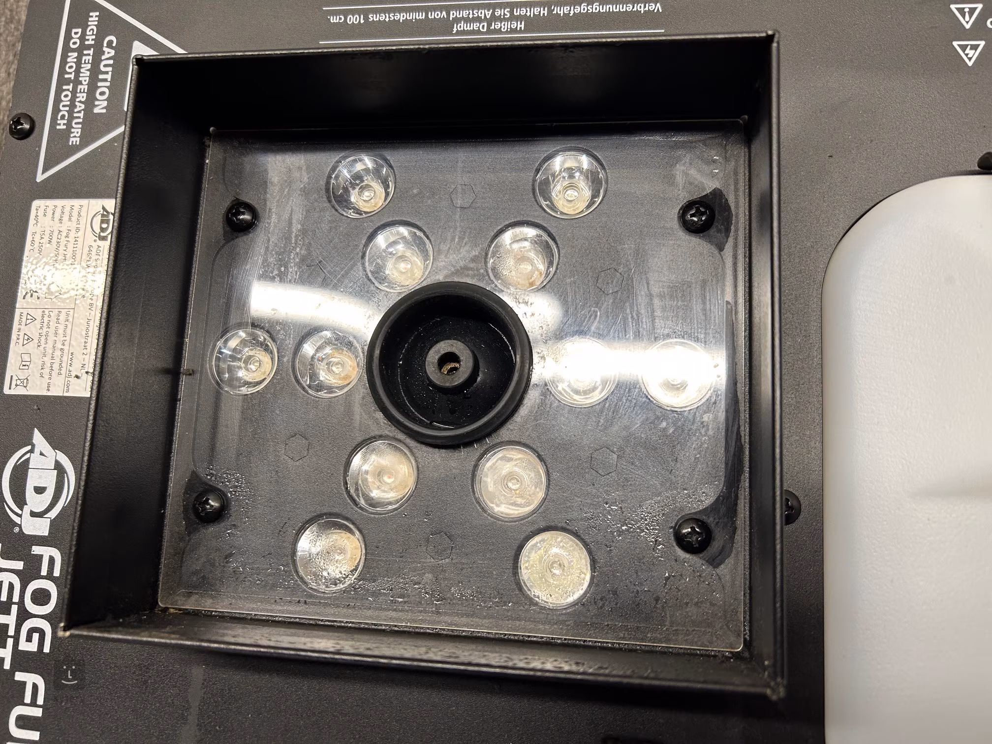 Fog Fury Jett od společnosti ADJ je výrobník mlhy s LED podsvícením, který do mlhy přimíchává barvy z dvanácti 3W LED diod typu RGBA (3x Red, 3x Green, 3x Blue, 3x Amber). Zařízení lze polohovat v různých směrech a využít tak horizontální i vertikální produkci mlhy.