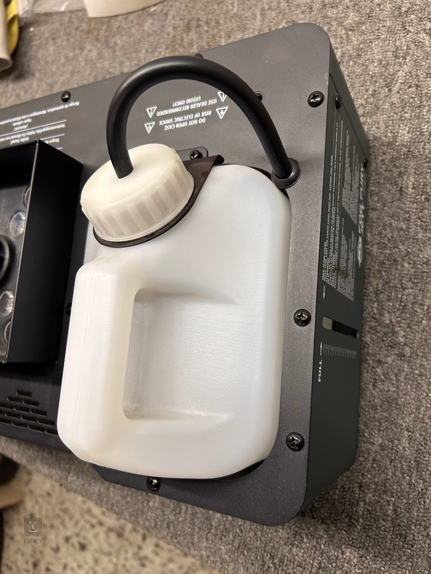 Jako vhodná náplň poslouží libovolná kapalina do mlhovače na vodní bázi. Pro optimální výstup výrobce doporučuje využít náplň ADJ Fog Juice CO2.