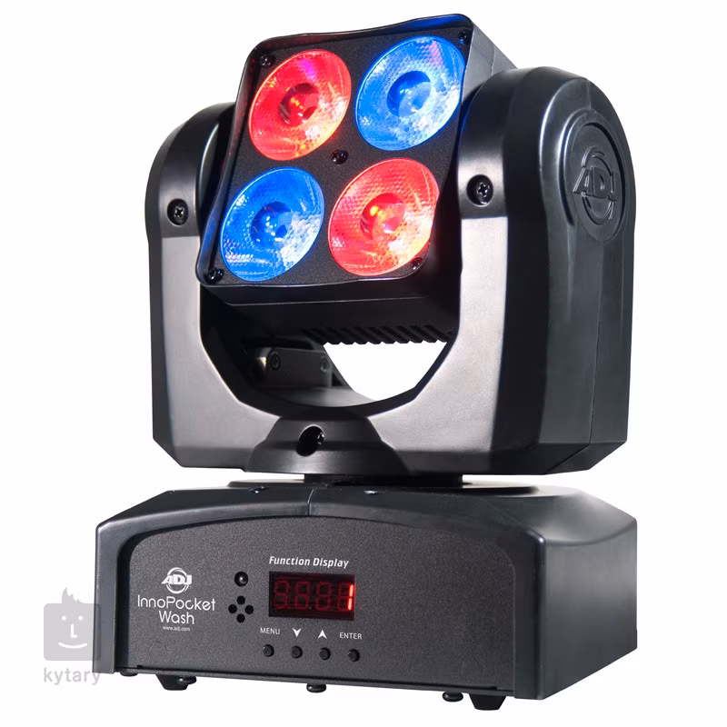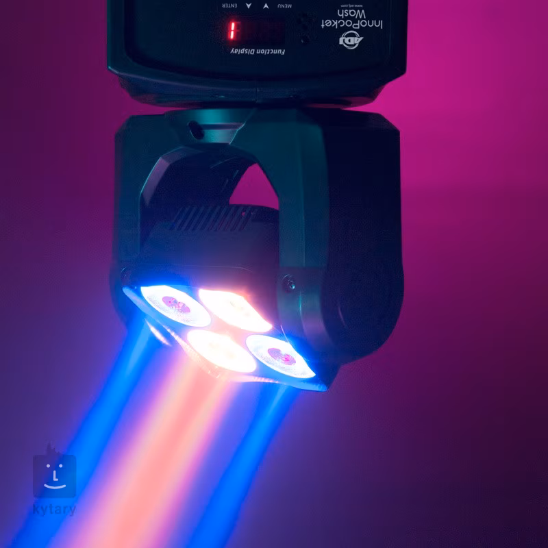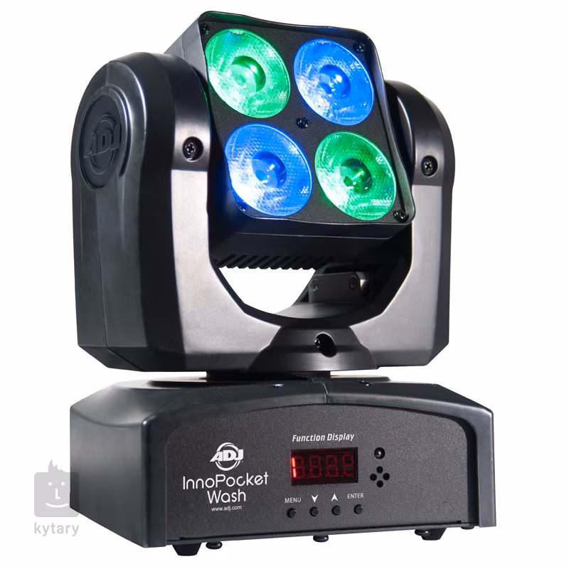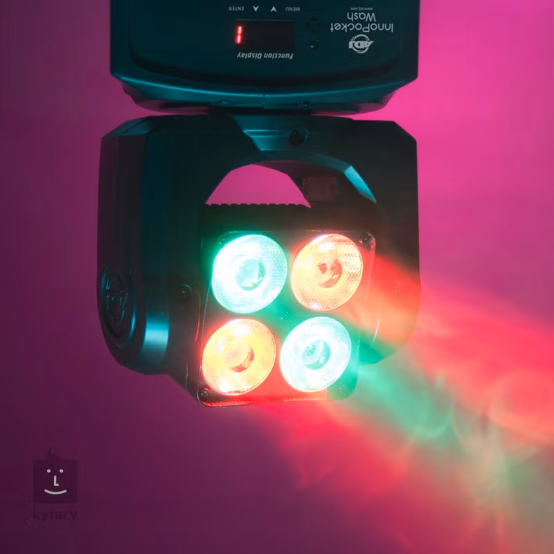 Díky 4 ks 10W Quad LED diod 4 v 1 (RGBW - červená, zelená, modrá a bílá), rychle se pohybující hlavě a úžasným barvám vytváří Inno Pocket Wash jasné, vzrušující světelné efekty. K dispozici jsou režimy obrácení vertikálního i horizontálního pohybu, takže při propojení dvou hlav se jedna může pohybovat v obráceném směru oproti druhé.