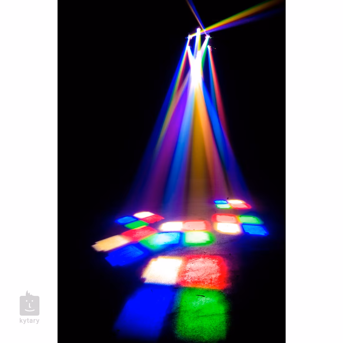 • Světelný efekt s vysokým výkonem využívající čtyřbarevné LED diody, má 3 skenerové a 3 rotující hlavy