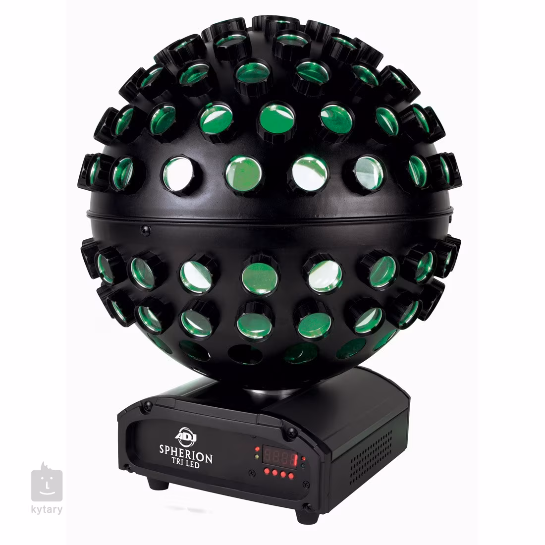 Spherion TRI LED vytváří efekt podobný moderní disko kouli. Obsahuje pět jasných 3wattových bílých LED zdrojů, které promítají ostré paprsky světla ze 116 čoček, a při rotaci tak naplní paprsky celou místnost. Jednotka má malý příkon - pouze 27W - a obsahuje gumový podstavec a odstranitelný závěsný držák, lze ji tedy posadit na podlahu nebo stůl či zavěsit ze stropu. Disponuje také 3 DMX kanály, které uživateli umožňují ovládat rychlost a směr rotace, stmívání, strobo efekt a změnu barev. Spherion TRI LED má také vzrušující programy ovládané zvukem (SoundActive), které lze zpřístupnit pouhým zapnutím zařízení.