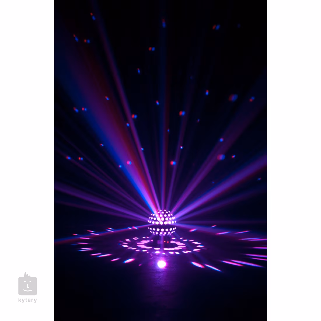 • Vytváří ostré paprsky ze 116 čoček rotujících v rozsahu 360 stupňů okolo vysoce výkonného TRI Color LED zdroje, čímž dochází k zalití tanečního parketu, stropu nebo zdí mnoha paprsky světla