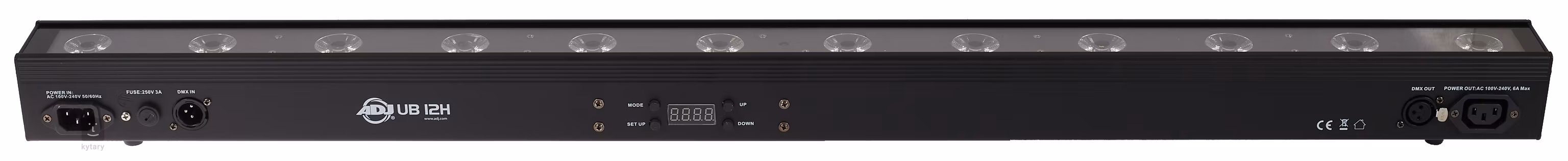 LED lišta o délce jeden metr obsahuje dvanáct 6W LED diod poskytujících mix šesti barev, které dodají atmosféru jakémukoliv vnitřnímu prostoru. K dispozici jsou funkce jako 35 barevných presetů (Color Macros), šest DMX režimů, pět provozních režimů (Auto, Sound, Dimmer, Static Color, DMX), nastavitelná clona (0-100 %) nebo pulsní a stroboskopický efekt. Zabudované čtyřtlačítkové ovládací menu, lze rozšířit o dálkový ovladač RF ADJ RFC (není součástí dodávky). Součástí balení je montážní sada pro uchycený na stěnu i pevné připevnění na zem. Snadné a rychlé propojení s dalšími jednotkami umožňuje patentovaný systém Quick Align.