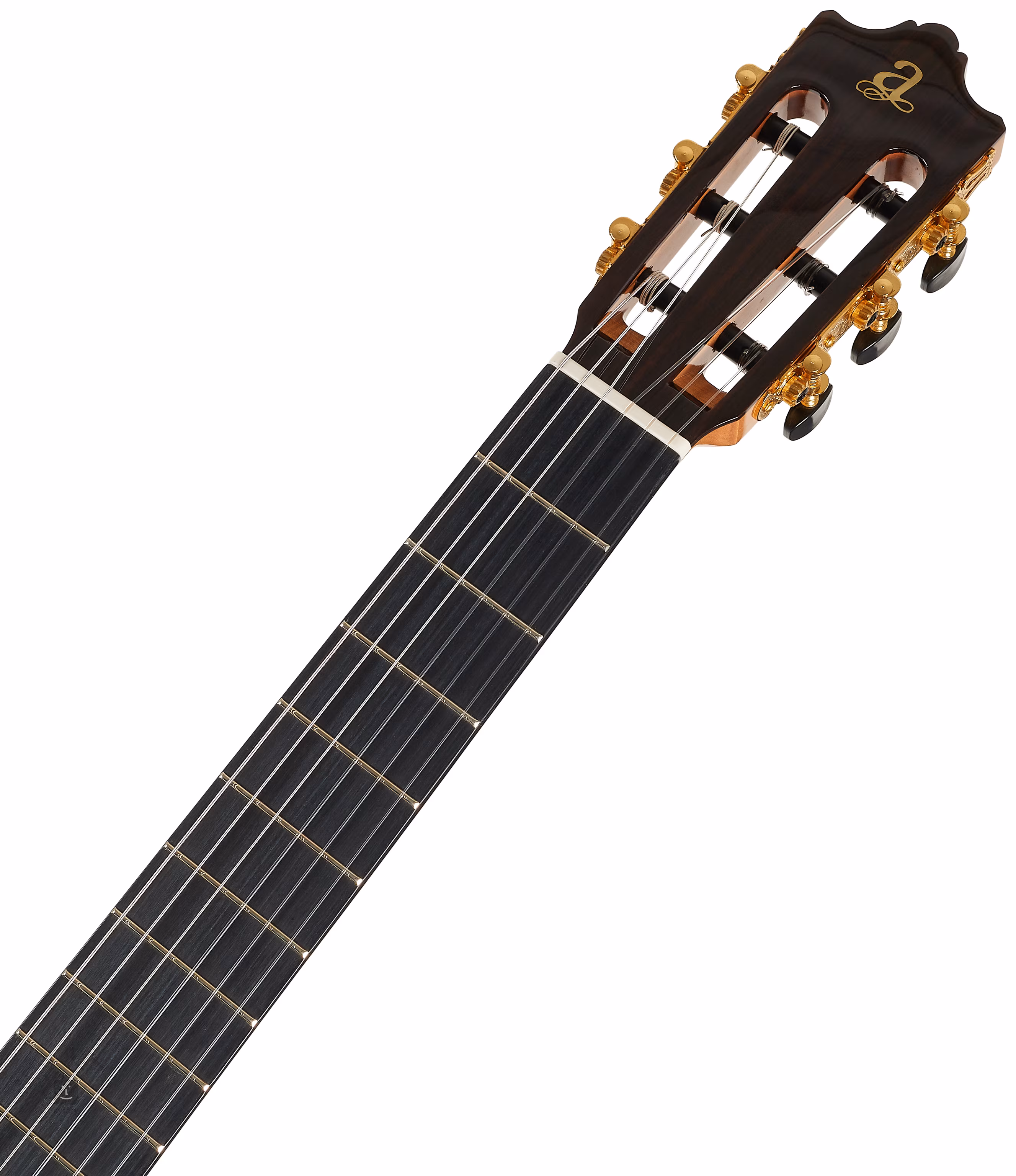K cedrovému krku je přilepen ebenový hmatník osazený dvaceti pražci. Struny jsou uchyceny v klasických ladicích mechanikách ve zlatém provedení a ebenové kobylce se dvanácti otvory, tj. struny se kobylkou vinou dvakrát.