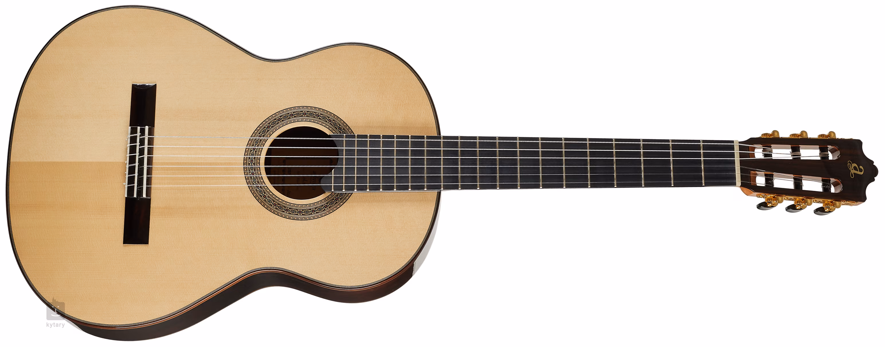 K cedrovému krku je přilepen ebenový hmatník osazený dvaceti pražci. Struny jsou uchyceny v klasických ladicích mechanikách ve zlatém provedení a ebenové kobylce se dvanácti otvory, tj. struny se kobylkou vinou dvakrát.