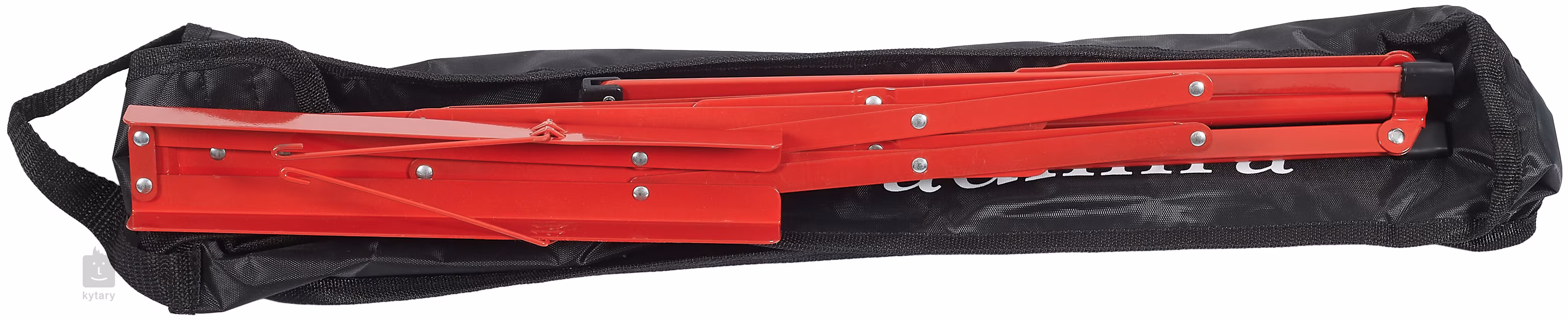 Skládací notový stojan Admira MUS006 Red s kovovou konstrukcí, nastavitelnou výškou (640 - 1270 mm) a notovým pultem s rozměry 505 x 290 mm. Notový stojan je dodáván v obalu.