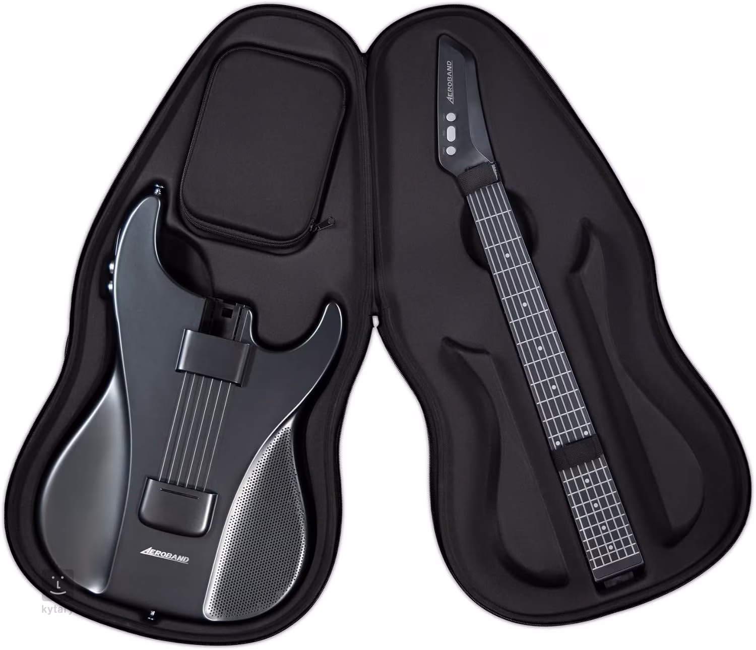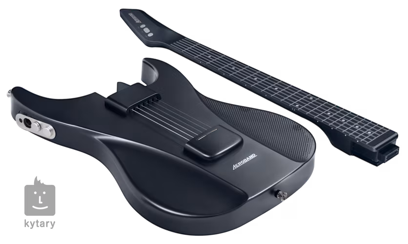 Aeroband Smart Guitar Black je více než jen digitální kytara s originálním designem - nabízí devět zabudovaných digitálních/MIDI zvuků (od kytar přes banjo až po klavír), zabudovaný reproduktor (Bluetooth konektivitu), smyčky bicích doprovodů a mikrofonní vstup.