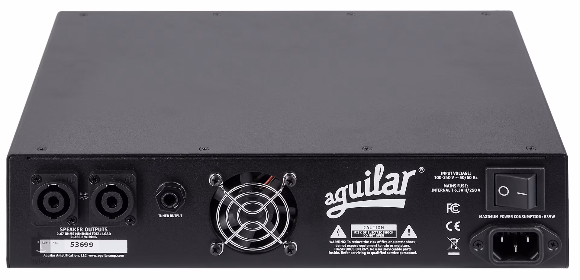 Nový zesilovač od světoznámé newyorské společnosti Aguilar potěší nejednoho basáka výkonem 700 W při 4 ohmech a opravdu muší váhou 2,2 kg. Hlava vychází z legendárního zesilovače AG 500, svým ovládáním je ale daleko jednodušší a přístupná všem. Na vstupu je možné aktivovat tlačítko „-10dB“ podle toho zda používáte aktivní nebo pasivní baskytaru. Ekvalizér tvoří ovladače výšek, vyšších a nižších středů a basů. Pro posílení širšího pásma basů a výšek slouží spínače Deep a Bright. Tlačítko Mute k utlumení výstupního signálu dobře poslouží k přeladění nebo výměně basy během koncertu. Zesilovač dále disponuje sériovou efektovou smyčkou, symetrickým XLR výstupem se spínači pre/post EQ a zemněním a dvěma reproduktorovými výstupy Speakon na zadním panelu.