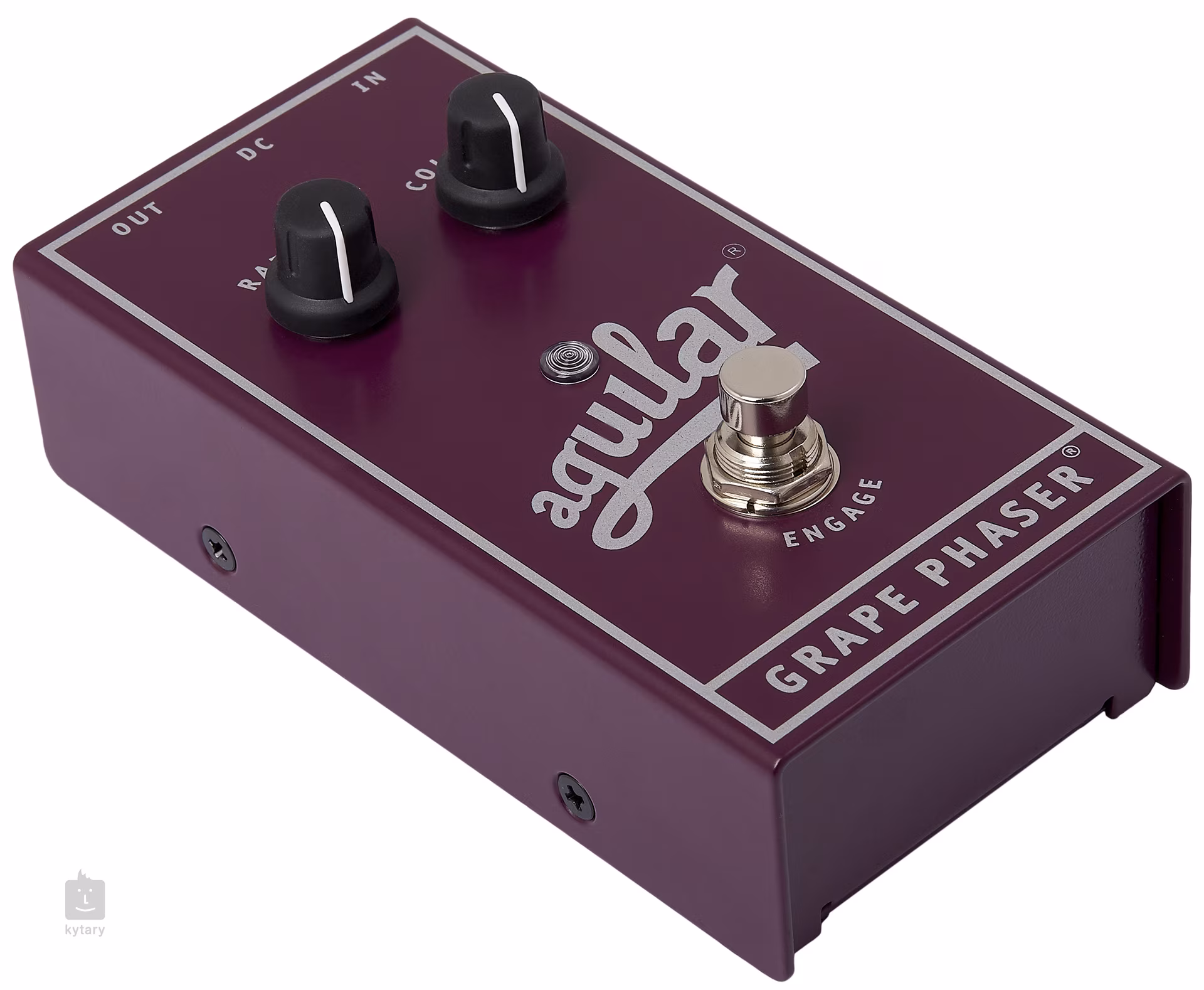 Pokud hledáte spolehlivý a jednoduchý baskytarový phaser, Aguilar Grape Phaser by mohl být tou správnou volbou. Veškeré nastavení probíhá pomocí dvou potenciometrů, z nichž ovladač Rate ovlivňuje rychlost modulace, zatímco potenciometr Color vrací část signálu zpátky do obvodu, čímž vzniká efekt ne nepodobný autowahu. Pedál najde uplatnění zejména ve funku a soulu, bez obav jej však můžete použít v libovolném žánru. Zajímavostí je také gig-saver bypass, díky kterému pedálem prochází signál i při vybité baterii.