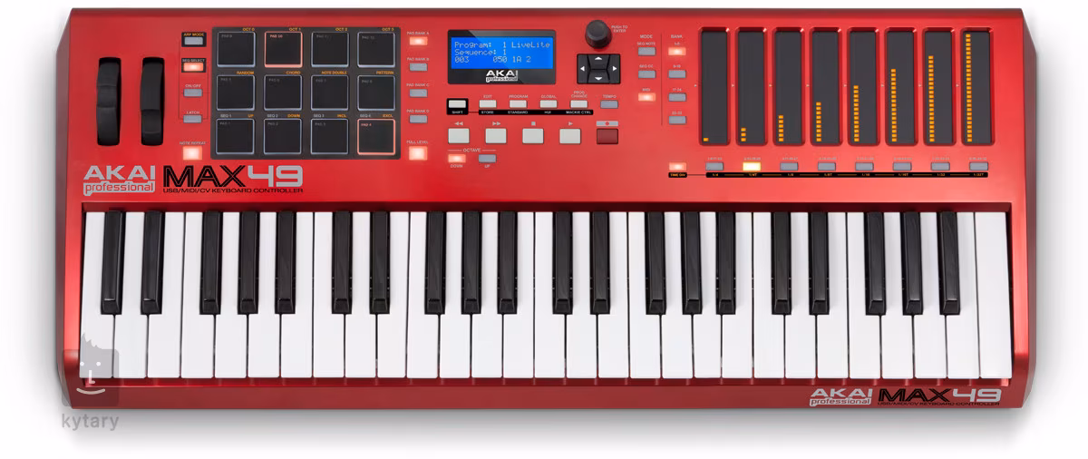 MAX49 od Akai Professional vkládá do vašich rukou revoluční MIDI a CV (napěťově řízené) ovládání. Díky intuitivnímu rozmístění ovladačů a obsaženému softwaru AkaiConnect pro automatické mapování, nabízí MAX49 okamžitý a naprosto pohlcující zážitek s vaším oblíbeným hudebním softwarem a prakticky všemi VST plug-iny. Od 49 polo-vyvážených kláves a 12 originálních MPC padů, až po průkopnické LED dotekové fadery a vintage CV & Gate výstupy, MAX49 kombinuje nejmodernější technologie Akai Professional s klasickou kompatibilitou, což vám dává nebývalé možnosti pro muzicírování.