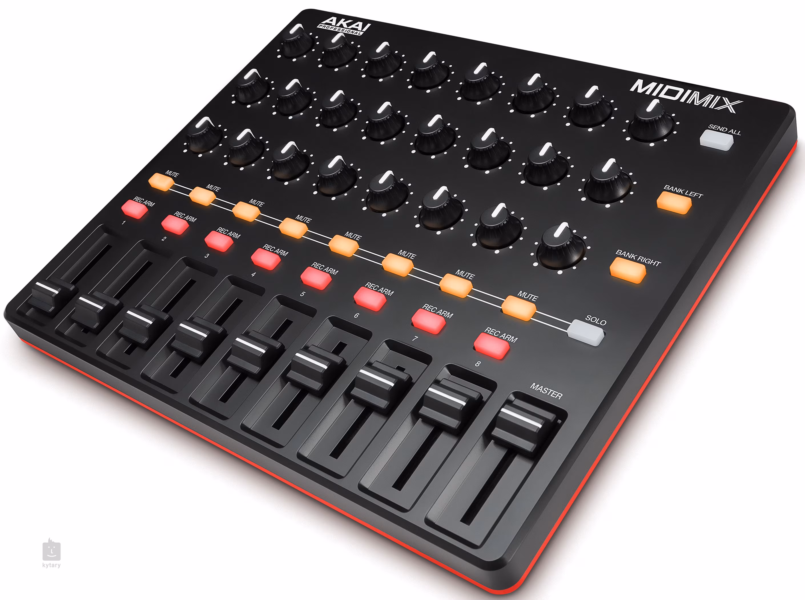 Jak už bývá zvykem, značka AKAI zaručuje jistou kvalitu v kombinaci s intuitivním rozložením všech ovládacích prvků. S přechodem z jiného kontroleru na MIDImix nebudete mít jistojistě žádný problém! Kombinace 8 line faderů, master faderu, 24 knobů (vždy tři pro jeden kanál). Uživatel může veškerá nastavení kontroleru odeslat do jeho DAW stiskem jediného tlačítka, to znamená, že veškeré modifikace a úpravy mohou probíhat v reálném čase a nabízí tak mnoho kreativních možností.
