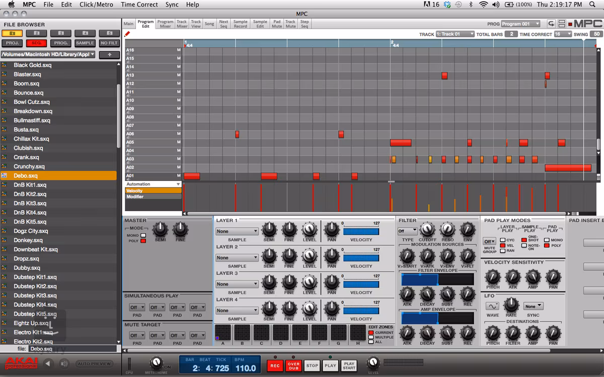 MPC Software pro Mac a PC s možností 64-stopého sekvencingu.