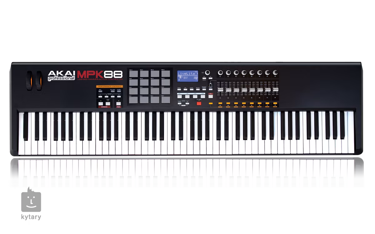 Akai Professional MPK88 je profesionální klávesový kontrolér s ovladači MPC série. MPK88 vychází z designu populárních MPK49, vůbec první klaviatury s funkcí MPC padů. Tato klaviatura, první svého druhu, je ideální pro živou produkci s prvotřídní vyváženou kladívkovou klaviaturou a navíc přidává MPC pady, Q-Link ovladače a výběr z technologie MPC.