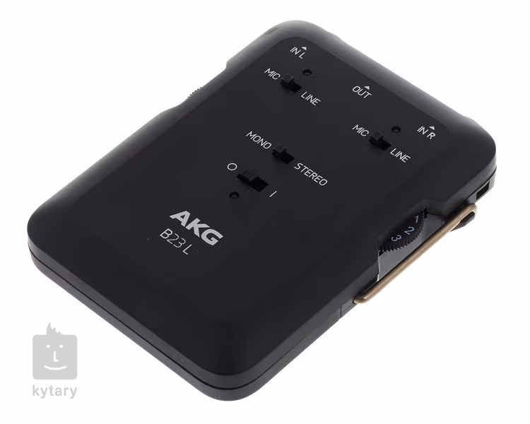 B23 L je kompaktní zdroj 9 V energie pro mikrofony AKG ze série MicroMic. Disponuje dvěma vstupy mini XLR, které pracují jak ve stereo, tak v mono módu. Každý ze vstupů disponuje vlastním ovladačem hlasitosti, takže B23 L lze použít i jako osobní mixér.