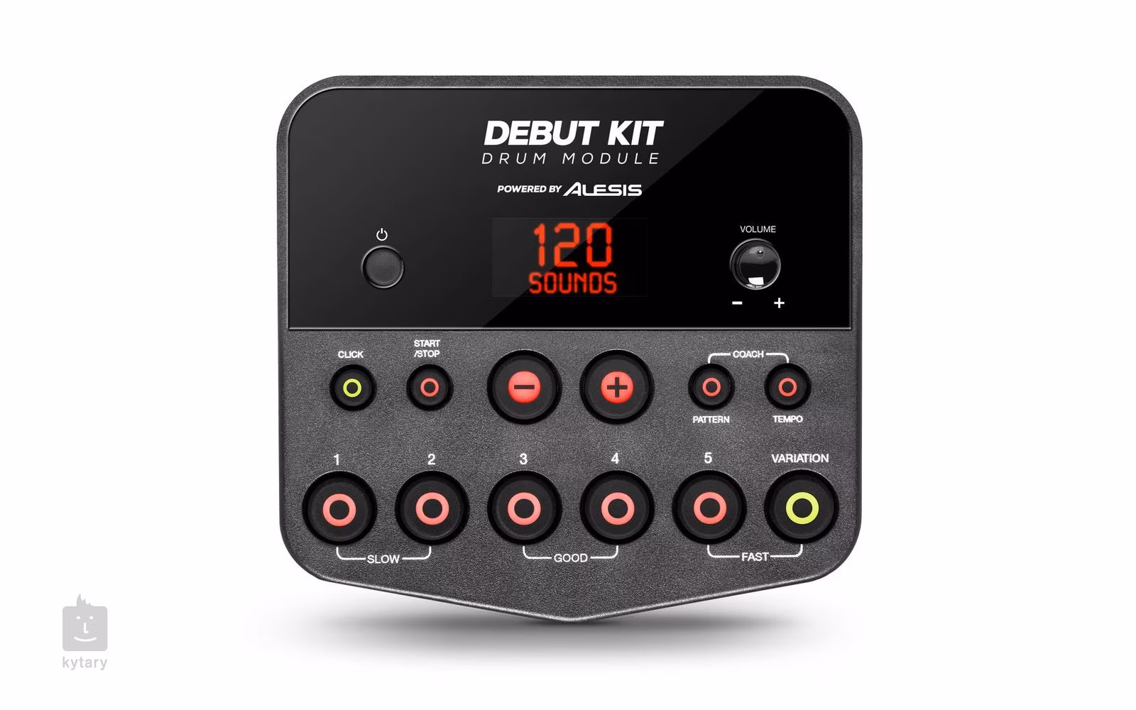 Srdcem této sady je bicí modul Debut, který obsahuje 10 sad bicích a dohromady až 120 zvuků jednotlivých bubnů, které využívají technologie Dynamic Articulation. Ta jim poskytuje až neuvěřitelně realistické herní a zvukové vlastnosti. Kromě skvělých zvukových vlastností také modul samozřejmě disponuje širokými možnostmi konektivity. Můžete využít například dvou 6,3mm Jack výstupů pro připojení externího ozvučení nebo pro tiché cvičení do sluchátek. Dále máte k dispozici MIDI ovládání a přepojení s počítačem přes USB. Díky 3,5mm Jack vstupu pak můžete připojit mp3 přehrávač, tablety nebo mobilní zařízení a jamovat tak se svými oblíbenými skladbami.