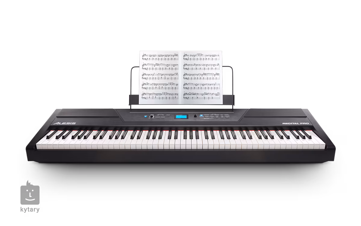 Alesis Recital Pro je digitální piano určené především začínajícím a pokročilejším hráčům, kterým nabízí 12 zvukových rejstříků, možnost rozdělení klaviatury nebo vrstvení zvuků a výukové funkce. Nechybí zabudované ozvučení a k pianu dostanete i notový stojan.