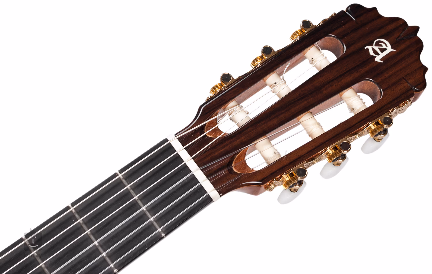 K mahagonovému krku s ebenovou výztuhou je přilepen ebenový hmatník osazený devatenácti pražci. Kobylka je též zhotovena z ebenu, samozřejmostí jsou přesné ladící mechaniky v klasickém designu. Tap Plate kolem ozvučnice nástroje neslouží primárně k ochraně laku/povrchu nástroje jako pickguard, ale k perkusní hře prsty typické pro styl flamenka. Design kytary vhodně doplňuje zdobná rozeta.