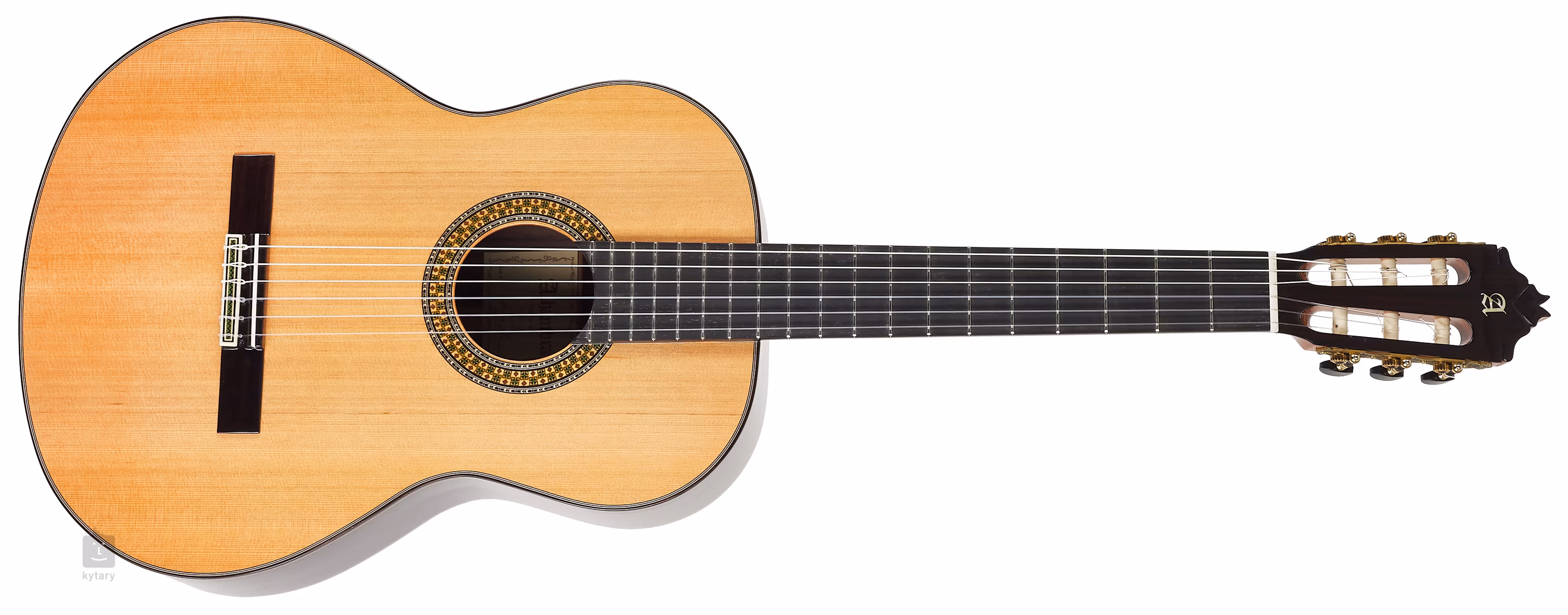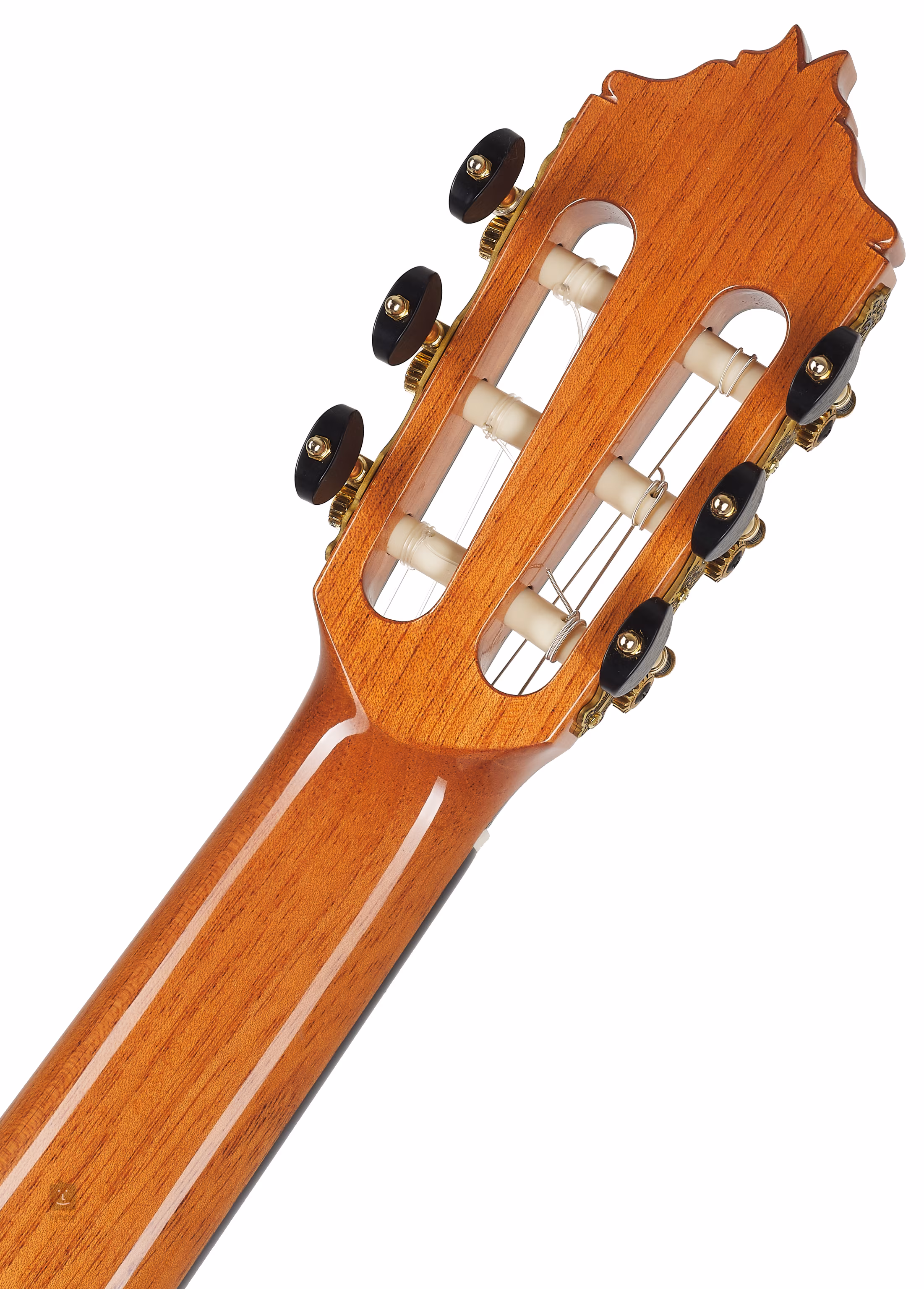 K cedrovému krku s ebenovou výztuhou je přilepen ebenový hmatník osazený devatenácti pražci. Kobylka je též zhotovena z ebenu, kostěné sedlo a nultý pražec poskytují strunám optimální vibraci. Stabilitu ladění zaručují přesné pozlacené mechaniky s klasickými kolíky. Design kytary vhodně doplňuje oboustranná lemovka a zdobná rozeta.