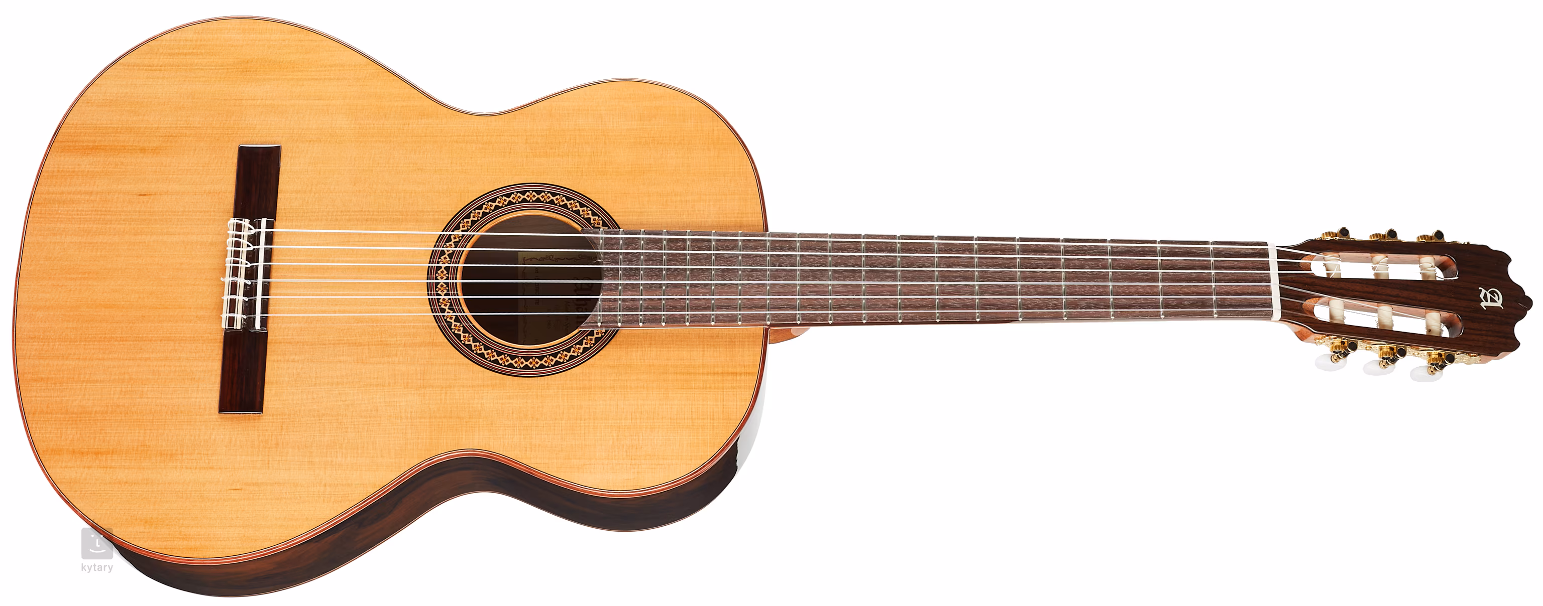 Užší mahagonový krk (Ergoneck) a palisandrový hmatník poskytují optimální herní komfort. Struny jsou přes plastový nultý a sedlový pražec uchyceny v pozlacených ladících mechanikách a palisandrové kobylce. Stylový vzhled nástroje podtrhuje oboustranná lemovka těla a a zdobná rozeta.