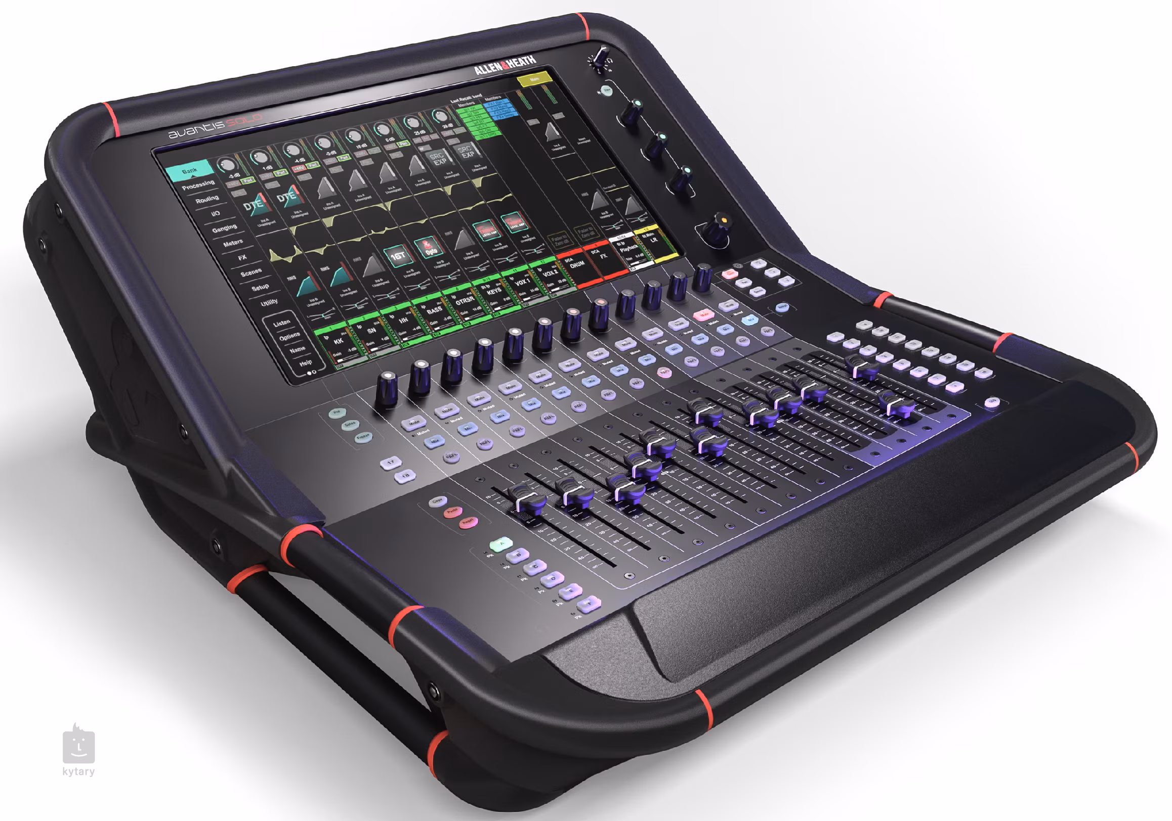 Avantis SOLO je vybaven celkem 64 kanály a 48 konfigurovatelnými sběrnicemi (busses), jeho ovládacímu panelu vévodí dotykový 15,6“ displej s HD rozlišením a k dispozici je také 12 táhel a 18 konfigurovatelných tlačítek. Obrazovka displeje je úzce propojena s táhly a knoflíky na ovládacím panelu, což umožňuje rychlé a snadné nastavení veškerých parametrů. Avantis SOLO vám umožní upravovat zvuk pomocí ekvalizéru, kompresoru a 12 digitálních efektů RackFX. Snadno nastavíte také signálový routing, scény a celkem 16 DCA, s jejichž pomocí můžete ovládat více kanálů najednou.
