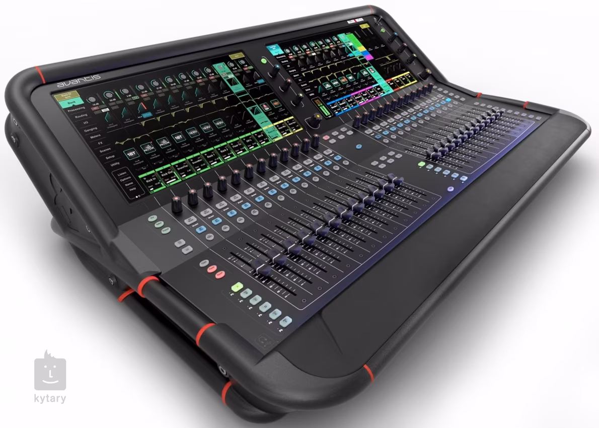 Avantis je vybaven celkem 64 kanály a 48 konfigurovatelnými sběrnicemi (busses), jeho ovládacímu panelu vévodí dva dotykové 15,6“ displeje s HD rozlišením a k dispozici je také 24 táhel a 24 konfigurovatelných tlačítek. Obrazovky dotykových displejů jsou úzce propojeny s táhly a knoflíky na ovládacím panelu, což umožňuje rychlé a snadné nastavení veškerých parametrů. Zařízení je rozděleno na dvě základní sekce – levá část je věnována vstupům a nastavení vstupního signálu, zatímco pravá strana slouží k ovládání sběrnic a hlavního mixu. Obě strany vám umožní upravovat zvuk pomocí ekvalizéru, kompresoru a 12 digitálních efektů RackFX. Snadno nastavíte také signálový routing, scény a celkem 16 DCA, s jejichž pomocí můžete ovládat více kanálů najednou.