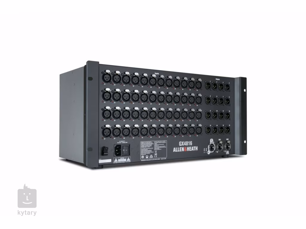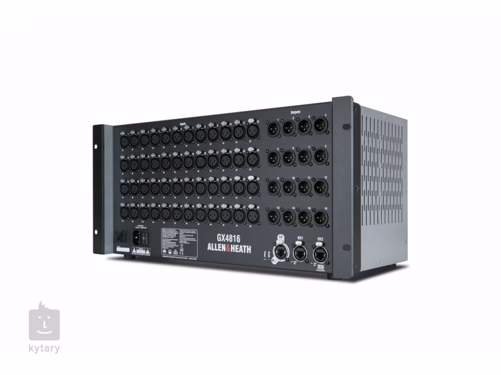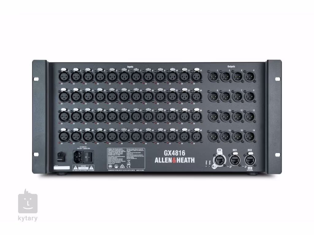 Každý rack GX4816 je vybaven 48 mikrofoními předzesilovači s nezávislým indikátorem fantomového napájení. Dále zde naleznete 2 DX porty, ke kterým lze do série připojit až 4 DX expandéry pro další vstupy a výstupy. Připojit můžete také osobní monitorovací systém ME (via konektor DX2).