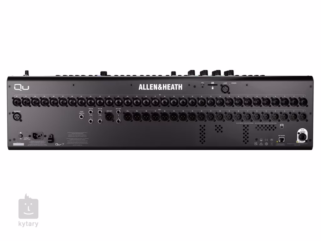 Mixpult Allen&Heath QU-7 je osazen 32 kombinovanými vstupy XLR/Jack, 2 linkovými stereo vstupy (2x 2 Jack TRS 6,3 mm), 20 XLR výstupy a 2 linkovými výstupy Jack TRS. Na jeho ovládacím panelu pak najdete celkem třicet tři citlivých 100mm táhel pro snadné nastavení jednotlivých kanálů. Jeho srdcem je výkonné jádro XCVI FPGA o vzorkovací frekvenci 96 kHz, které přináší bezkonkurenční zvukovou kvalitu. K dispozici jsou také možnosti DEEP Processing, které vám umožní rozšířit základní funkce mixu o vysoce kvalitní pluginy, jež často napodobují reálné modely kompresorů, preampů a jiných zařízení pro dosažení profesionálního audia.