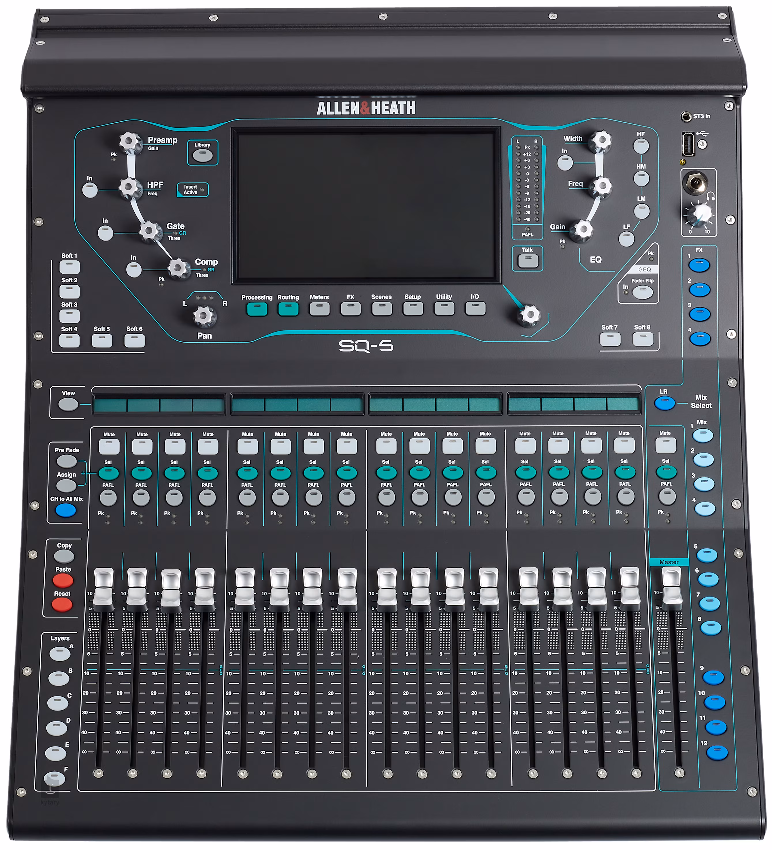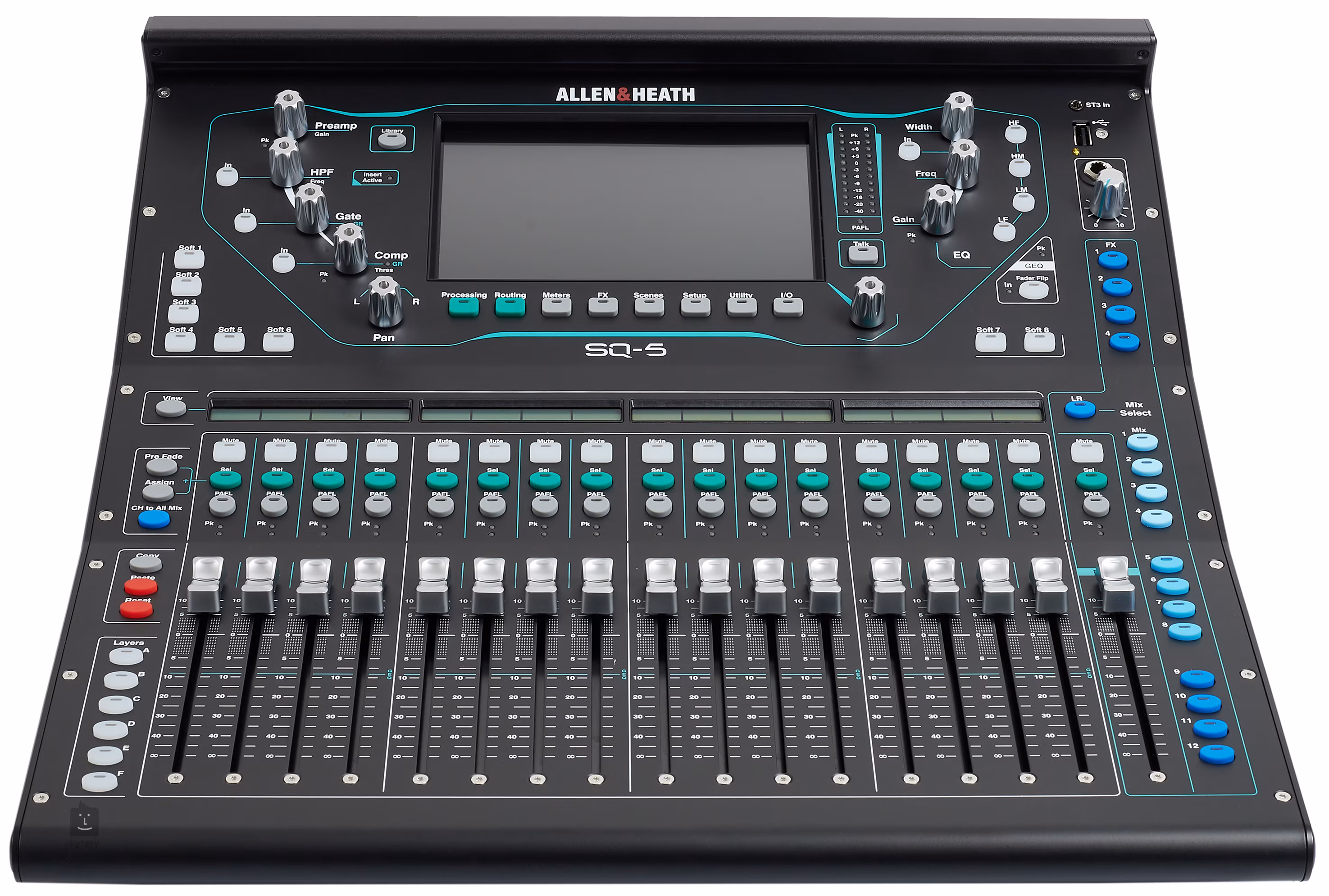 Allen&Heath SQ-5 je postaven na výkonném výpočetním XCVI FPGA jádru o vzorkovací frekvenci 96 kHz, které v této třídě digitálních mixážních pultů přináší bezkonkurenční zvukovou kvalitu, vysoké rozlišení a mimořádně nízkou latenci (<0.7ms). SQ-5 je vybaven 16 mikrofonními předzesilovači a 8 efektovými jednotkami (stereo) s přístupem do oblíbené efektové knihovny RackExtra FX skrze příslušné returny. Nalezneme zde také 12 sběrnic (group nebo aux), které jsou vynikajícím nástrojem pro práci a konfiguraci in-ear monitoringu, kdy výkonný Automatický Mikrofonní Mix (AMM) spolehlivě hlídá prostředí s vyšším počtem mikrofonů. SQ je perfektním řešením pro AV, rentálky, instalace i živé kapely.