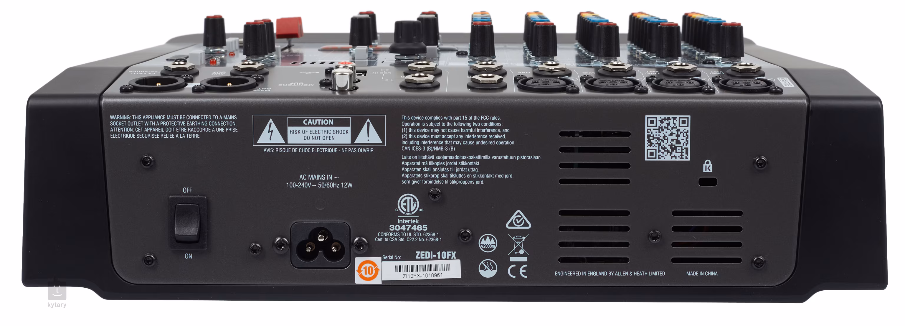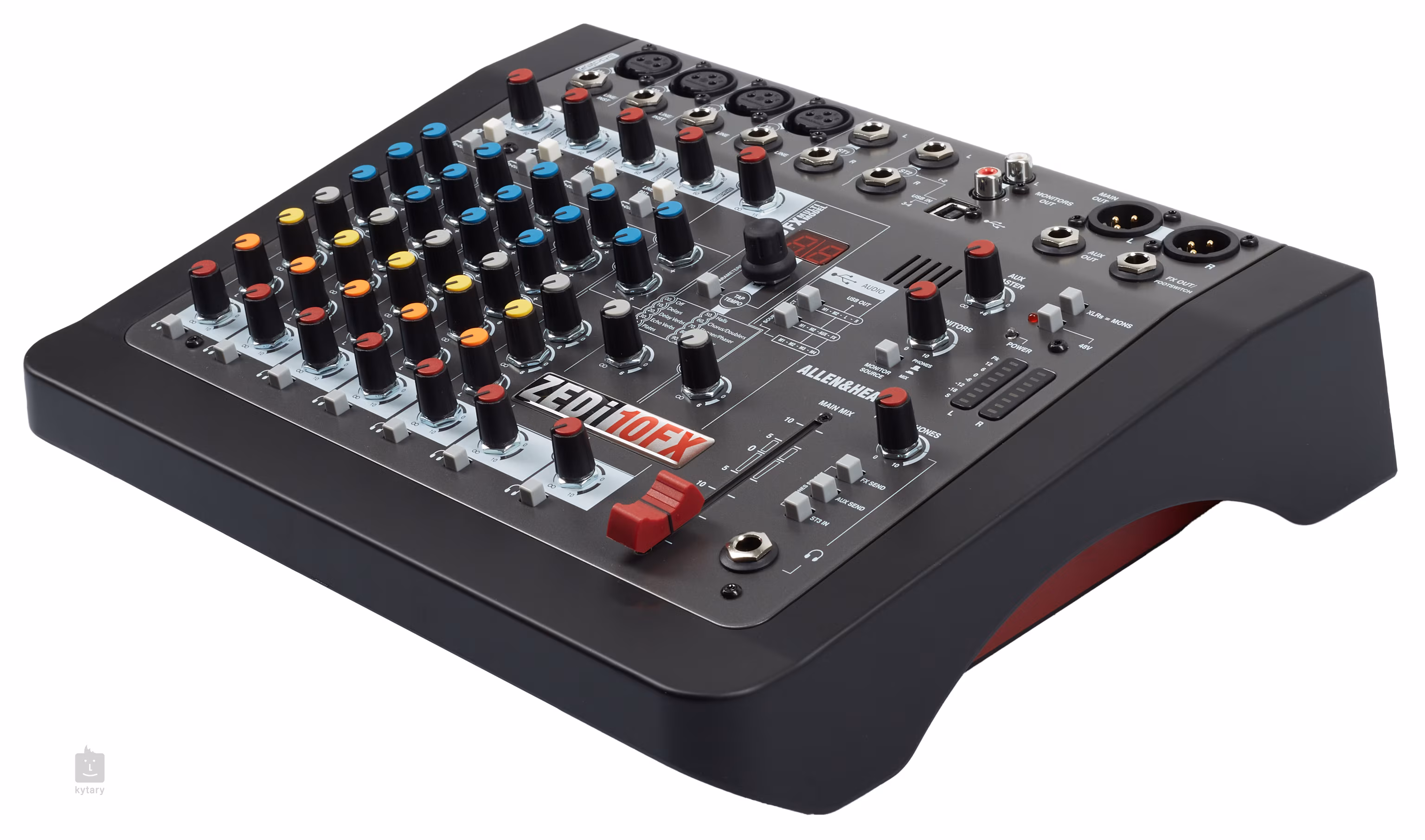 Všechny kanály lze díky efektové jednotce obohatit o delay, reverb nebo kombinaci těchto efektů. Nechybí RCA výstup pro monitory a Aux a FX Out.