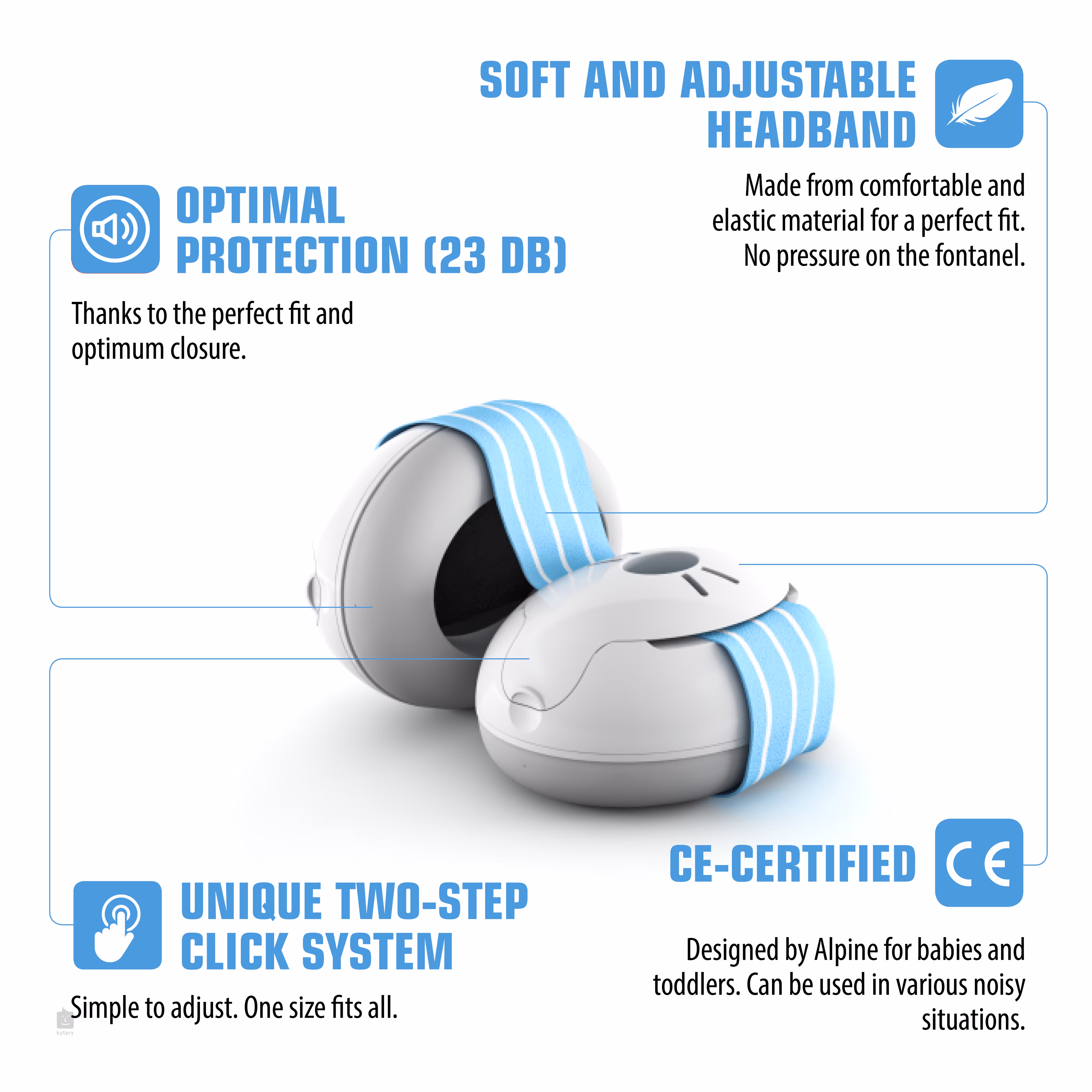 Izolační sluchátka Alpine Muffy Baby ochrání sluch vašeho dítěte ať už jste na festivalu, na party nebo mu jen chcete dopřát klidný a ničím nerušený spánek. Dvě samostatná sluchátka, které vyplňuje velmi měkká pěna, spojuje jemná elastická čelenka. Jednoduchý, ale spolehlivý systém uchycení umožňuje rychlé a přesné nastavení polohy a rozměrů podle potřeb. Svojí konstrukcí jsou sluchátka určena především pro nemluvňata a batolata. Součástí balení je i pytlík pro snadný přenos a zachování hygieny. Označení CE zaručuje, že výrobek vyhovuje veškerým evropským směrnicím včetně základních požadavků na bezpečnost a ochranu zdraví.
