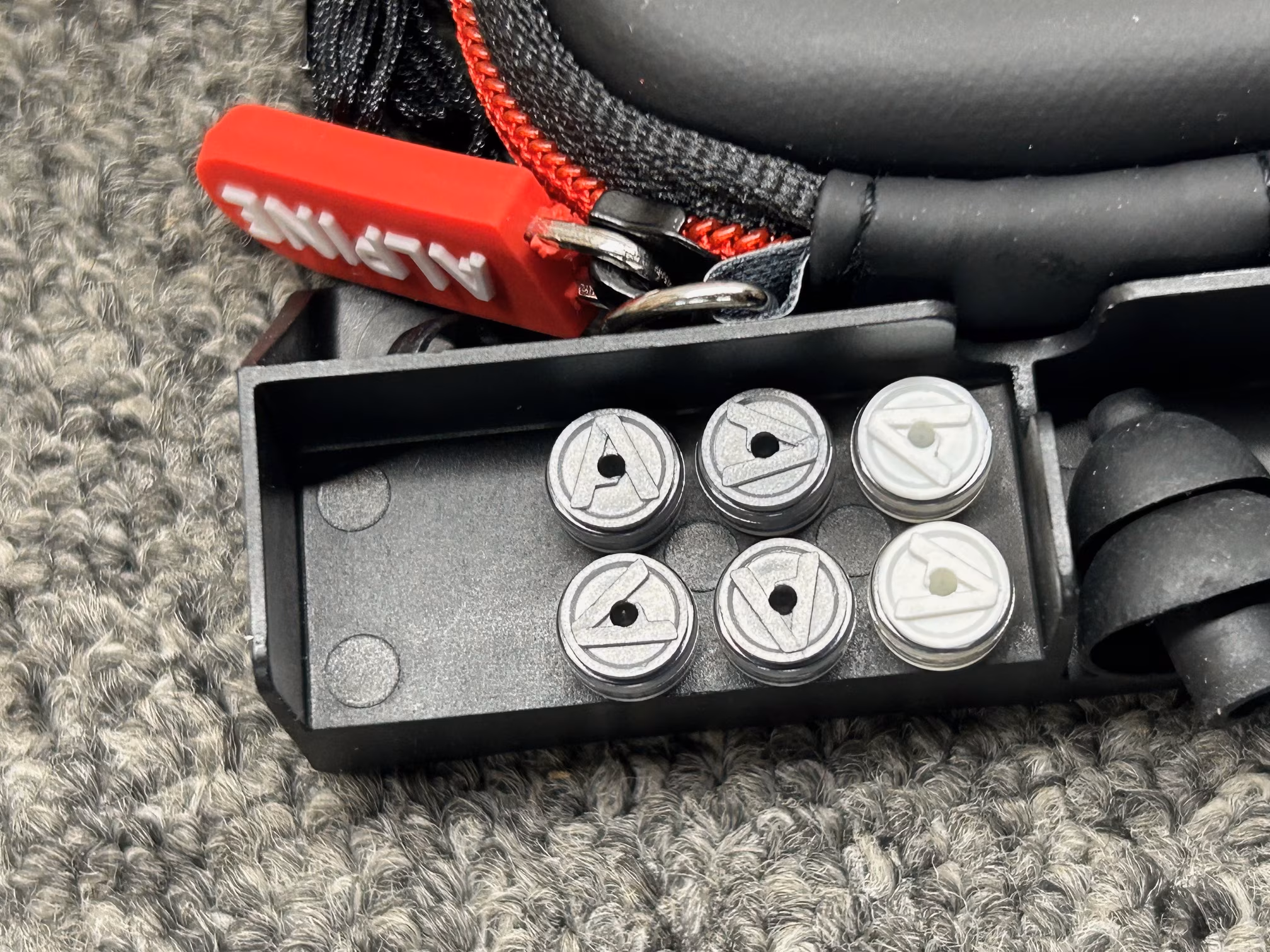 Součástí balení je trojice špuntů (včetně jednoho náhradního), tři výměnné filtry, Alpine šňůrka pro snadné přenášení, se kterou špunty zaručeně neztratíte, Alpine čistící sprej a luxusní pouzdro.