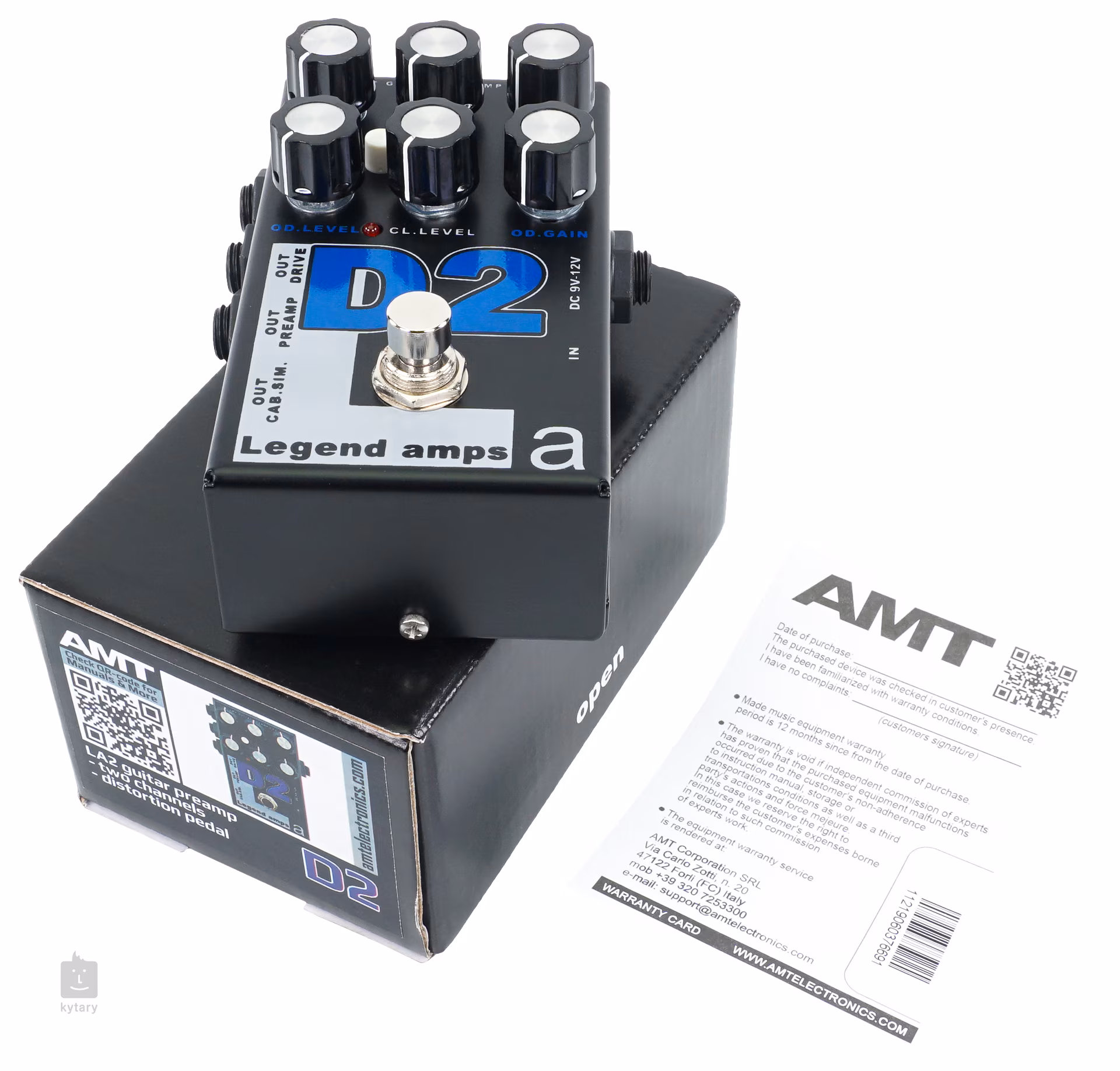 Kytarové efekty z řady Legend Amps Series II značky AMT Electronics navazují na základní řadu a nabízí odezvu a zvuk předzesilovačů lampových kytarových aparátů známých značek. Nově se jedná o dvoukanálové efekty/preampy s čistý kanálem postaveným na zvuku aparátů Fender, v případě modelu D2 vychází overdrive/distoriton kanál z charakteristik hi-gain aparátů Diezel. K přepínání mezi kanály slouží footswitch pedálu (clean channel v bypass nastavení).