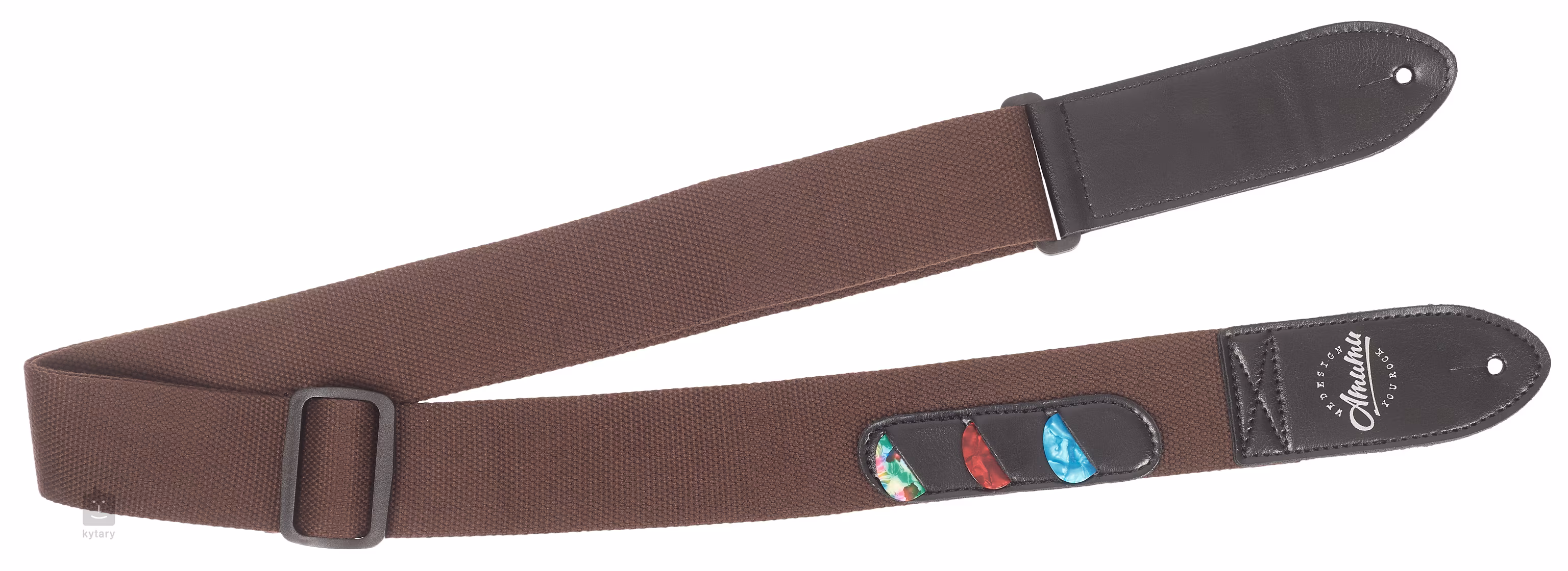 Cotton Pickholder Strap je cenově dostupný popruh vyrobený z bavlny pro co nejpohodlnější nošení. Samozřejmostí je nastavitelná délka, jejíž rozpětí umožňuje použití popruhu i na jiných nástrojích než jsou kytary a baskytary, například ukulele nebo mandolína. Konce z kůže se postarají o pevné uchycení nástroje a jeden z nich je ozdoben logem společnosti. V případě, že máte na nástroji pouze jednu rolnu, v balení naleznete šňůrku sloužící k uchycení k hlavě.
