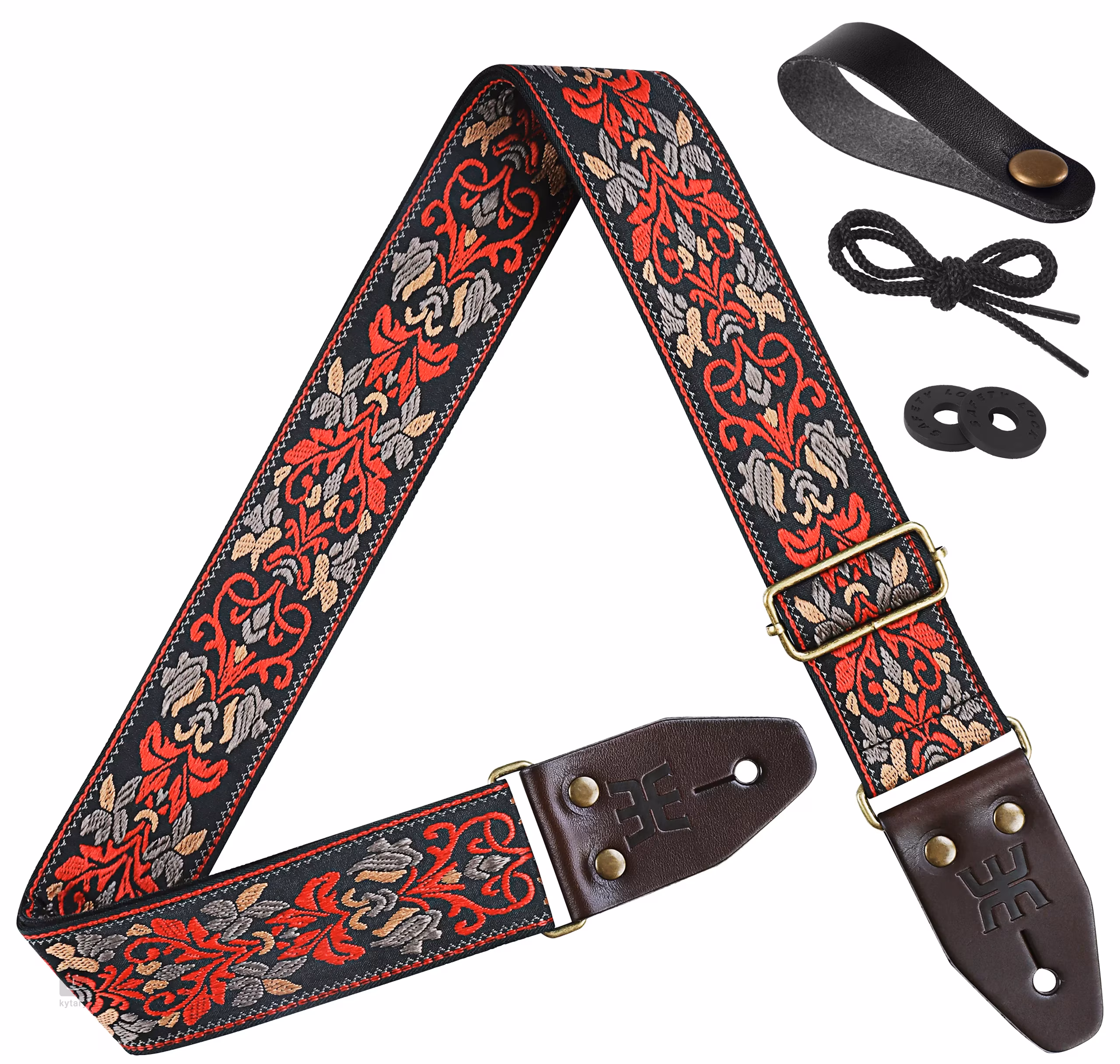 Kytarové popruhy značky AMUMU jsou známé svou odolností, spolehlivostí a kvalitou provedení. Díky široké nabídce modelů a barev si mezi nimi vybere opravdu každý. Popruh z řady Hearts & Spades vyniká nádherným žakárovým vzorem a disponuje kvalitními koženými koncovkami pro pevné uchycení k nástroji. Je vyroben ze směsi polyesteru a bavlny a umožňuje flexibilní nastavení délky v rozmezí 94 až 160 cm. Šířka popruhu je 5 cm. Dopřejte svému nástroji stylový doplněk, díky němuž vynikne na každém pódiu.