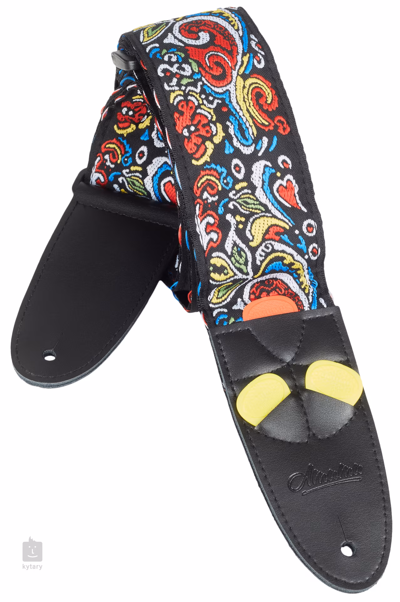 Love Flower Strap je odolný a designově velmi zajímavý popruh. Top je vyrobený z polyesteru, záda pak z měkkého nylonu. Délka je nastavitelná a hodí se pro většinu hráčů. Zároveň je díky tomu možné použít tento popruh, kromě kytary a baskytary, například na ukulele nebo mandolínu. Konce jsou z kůže pro kvalitní uchycení nástroje a jeden z nich je opatřen třemi praktickými kapsami na trsátka.