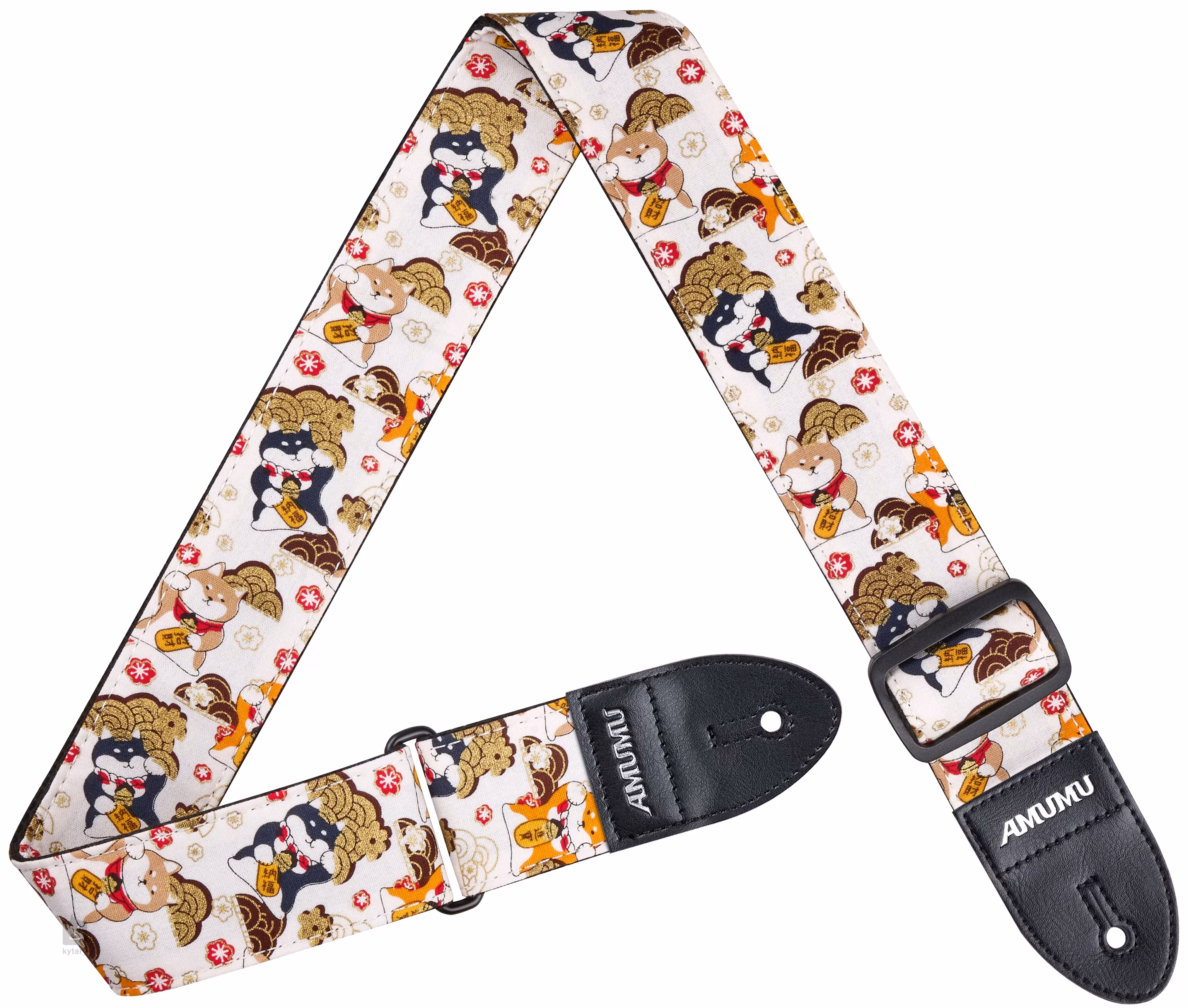 Kytarové popruhy značky AMUMU jsou známé svou odolností, spolehlivostí a kvalitou provedení. Díky široké nabídce modelů a barev si mezi nimi vybere opravdu každý. Popruh Lucky Cats na první pohled zaujme unikátní grafikou s japonskýma kočičkama Maneki-neko, který jistě ocení všichni milovníci japonské kultury. Vyroben je z pohodlného polyesterové materiálu, který je šetrný na kůži a dostatečně prodyšný, aby vám posloužil i v horkých letních dnech. Koncovky jsou vyrobeny z mikrovláknové koženky, která se stará o spolehlivé uchycení popruhu k nástroji.