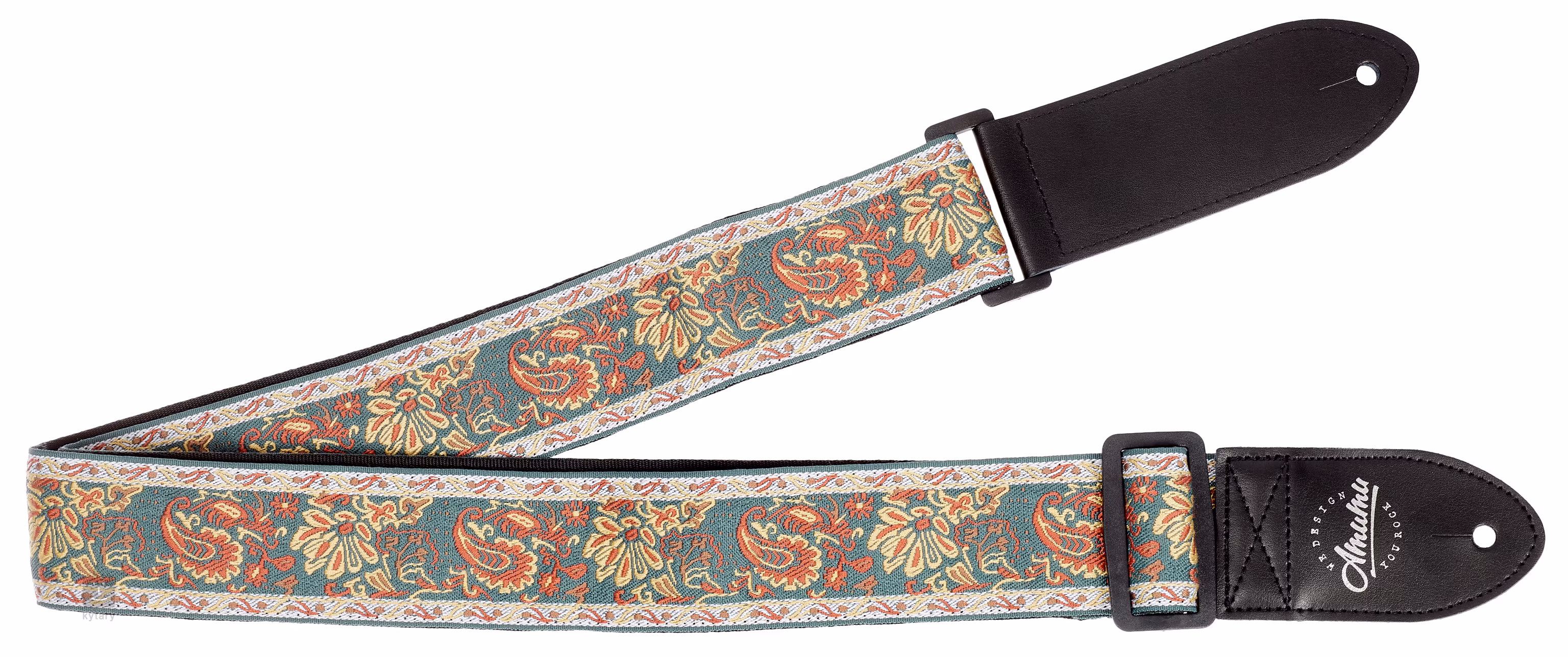 Vintage Paisley Strap je odolný a designově velmi zajímavý popruh. Top je vyrobený z polyesteru, záda pak z měkkého nylonu pro pohodlnější nošení. Délka je nastavitelná a hodí se pro většinu hráčů. Zároveň je díky tomu možné použít tento popruh, kromě kytary a baskytary, například na ukulele nebo mandolínu. Konce jsou z kůže, která se postará o pevné uchycení nástroje. V případě, že máte na nástroji pouze jednu rolnu, v balení naleznete šňůrku sloužící k uchycení k hlavě.