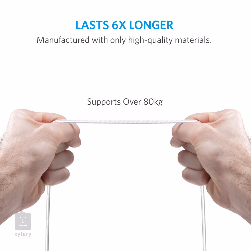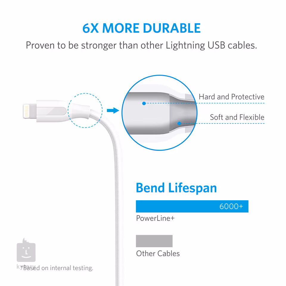 Premiový napájecí kabel pro váš iPhone, iPad nebo iPod. Kabel je oproti ostatním kabelům ohebnější a odolnější, také disponuje dlouhou životností, vydrží nejméně až šestkrát déle, nežli konkurenční kabely.