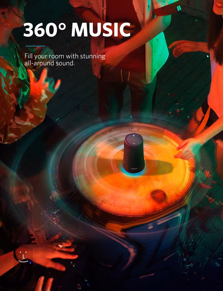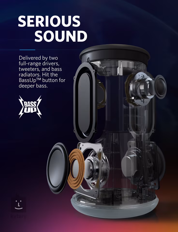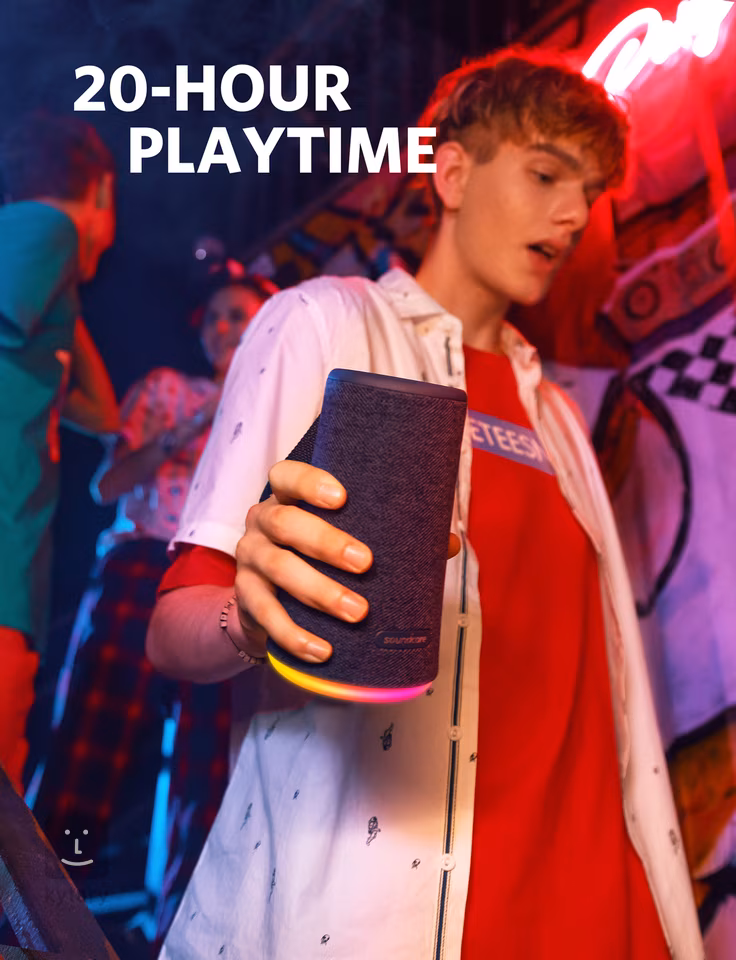 SoundCore Flare+ v sobě ukrývá dva 2" reproduktory s párem tweeterů a pasivních radiátorů, které přináší plnější zvuk basových frekvencí. Maximální výkon reproduktoru je 25 W, kdy i při maximálním výkonu získáte čistý zvuk s méně než jednoprocentním zkreslením. Zařízení připojíte k reproduktoru pomocí technologie Bluetooth 5.0, ta vám zaručí silný přenos signálu až na vzdálenost 20m. Pokud jste majitelem starších hudebních přehrávačů, zajisté uvítáte AUX vstup. Reproduktor můžete ovládat pomocí intuitivního modulu v horní části nebo přes aplikaci ve vašem telefonu. SoundCore aplikace nabízí přednastavené ekvalizéry pro různé hudební žánry a ovládání světelných efektů reproduktoru, kde pomocí pěti světelných režimů umocníte zážitek z daného okamžiku. Pokud byste zatoužili po dvojnásobku hudby a světel, není nic jednoduššího nežli synchronizovat dva reproduktory Flare+ a užít si tak plný prostorový stereo zvuk.