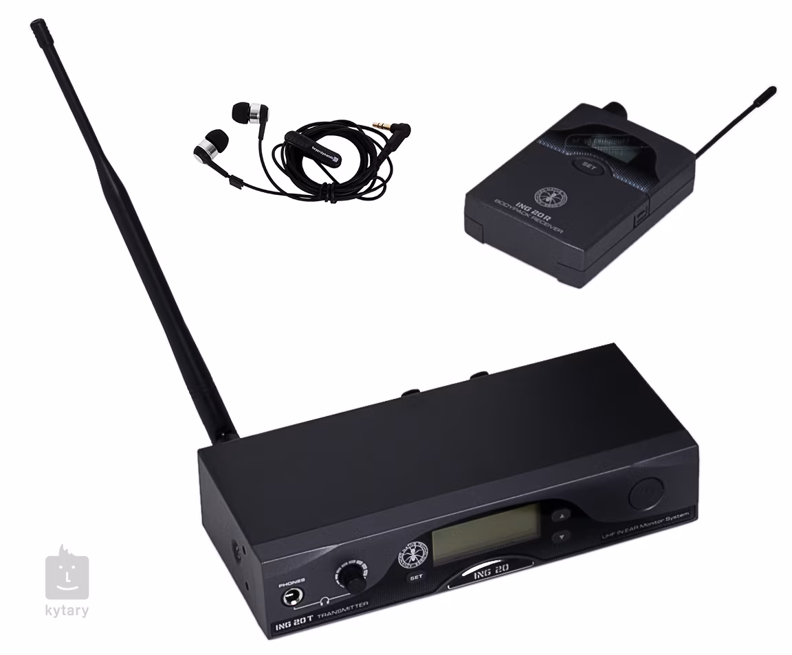 Ing 20 je bezdrátový systém pro In-Ear monitoring, který vám všude na podiu zajistí perfektní odposlech bez zkreslení a starostí o zpětnou vazbu. K dispozici je 96 kanálů v pásmu UHF. Sada se skládá z vysílače, kapesního přijímače a sluchátek. Součástí této sady je headset Beyerdynamic Fire One.